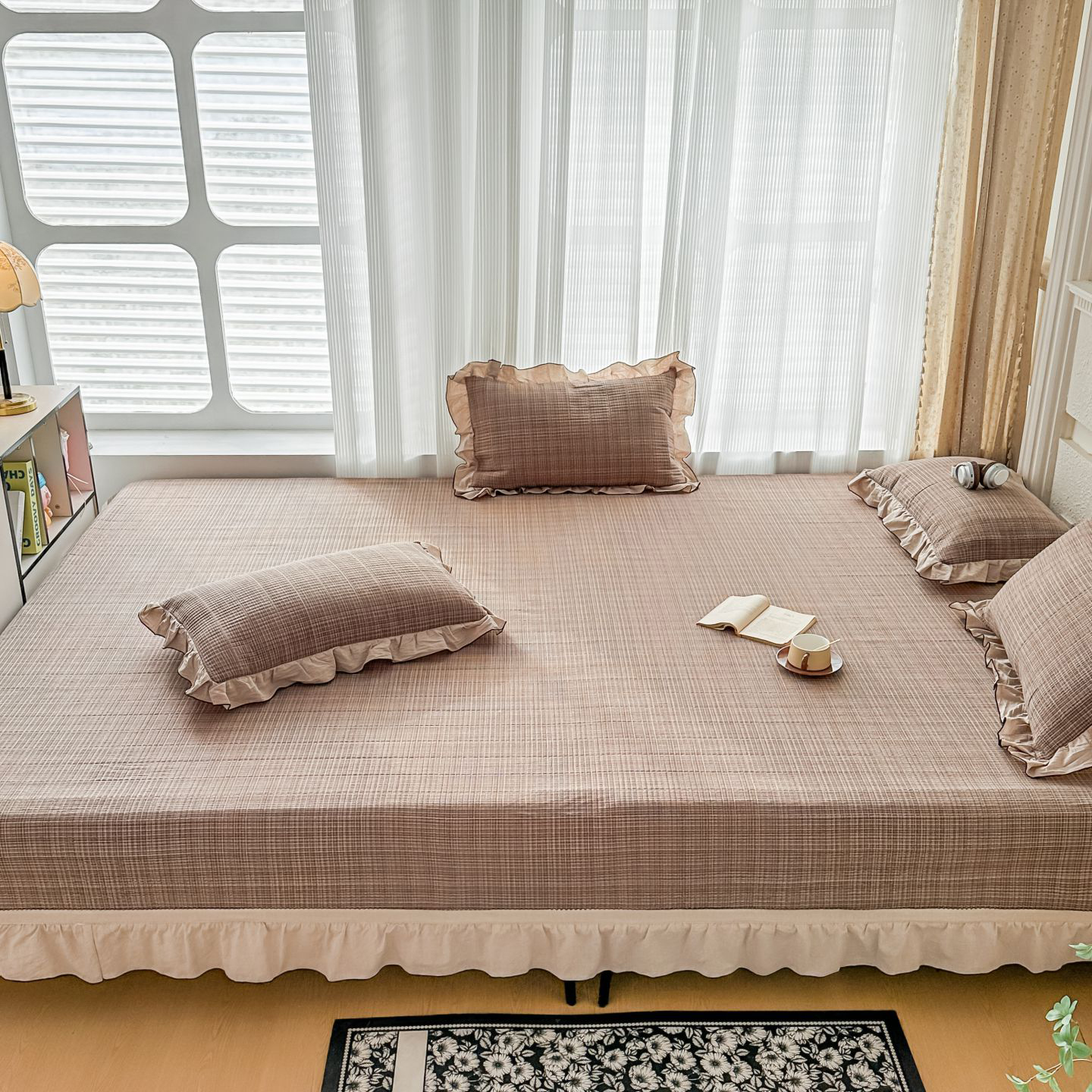 (总)暖居 2026新款支持定制法式花边纯棉榻榻米四件套全棉大炕盖三件套四季通用,白山茶,海盐兔,赫本白,晨暮间,灰格蝴蝶结,奶油点点,波点紫,豹纹KT,南法假日,浅咖,时尚小香,碎花兔蓝,旺仔紫色,小美好,小甜橘,小香格子,雅格,中国美