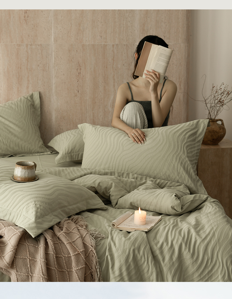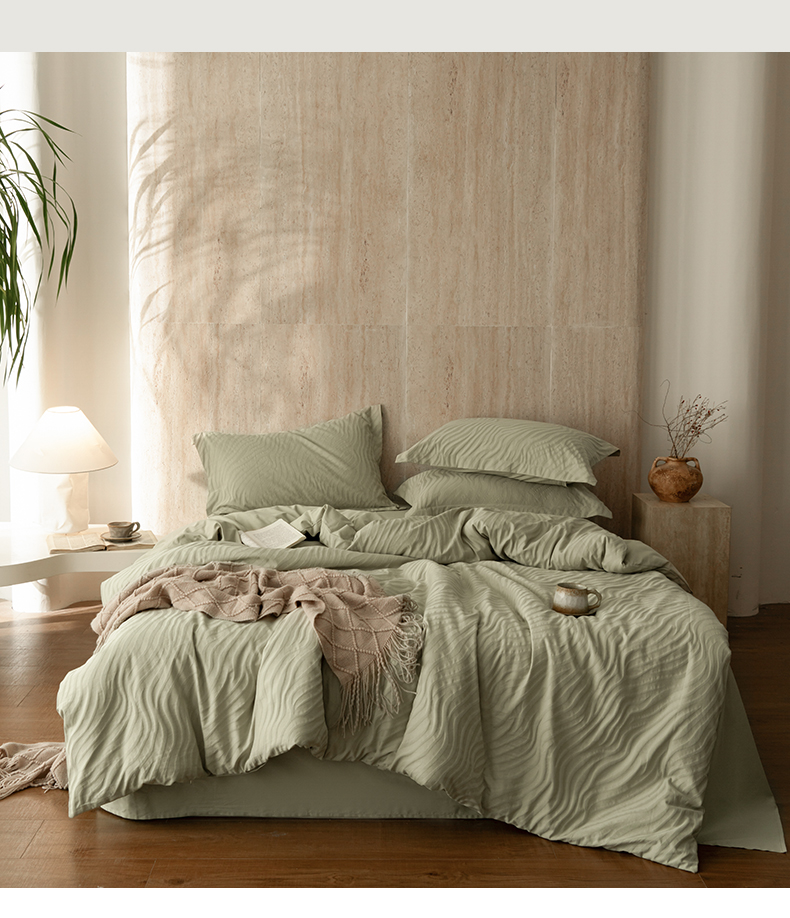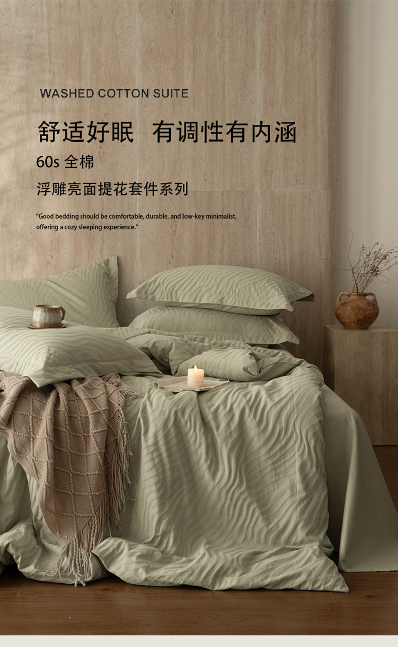 当前位置: 91家纺网 > 商品网购 > 床品套件 > 四件套 > 全棉普通四件套 > 爱思佳 2026新款A类全棉60s浮雕亮面提花系列四件套 杰斯绿