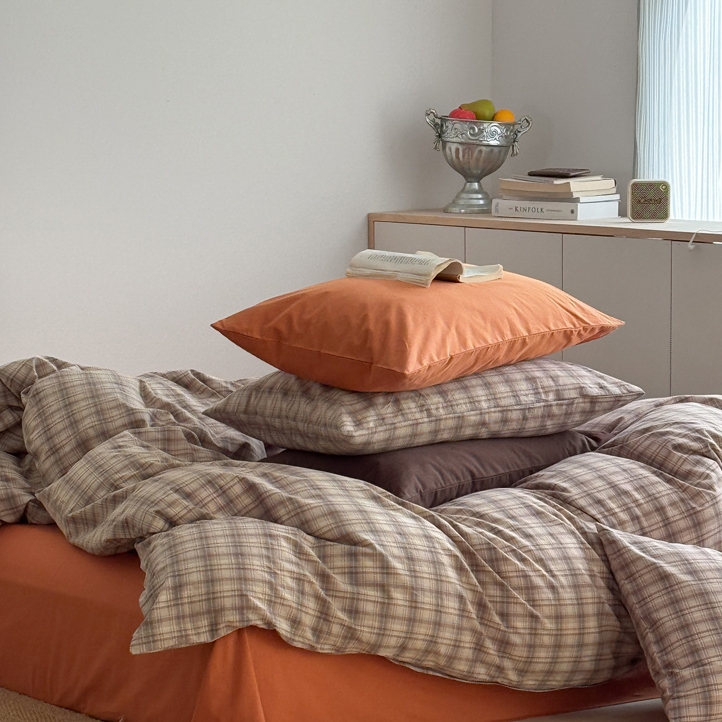 当前位置: 91家纺网 > 商品网购 > 床品套件 > 四件套 > 全棉普通四件套 > 蜜宿 2026新款全棉色织水洗棉四件套-茶色岛 茶色岛(枕套南瓜泥+格纹)