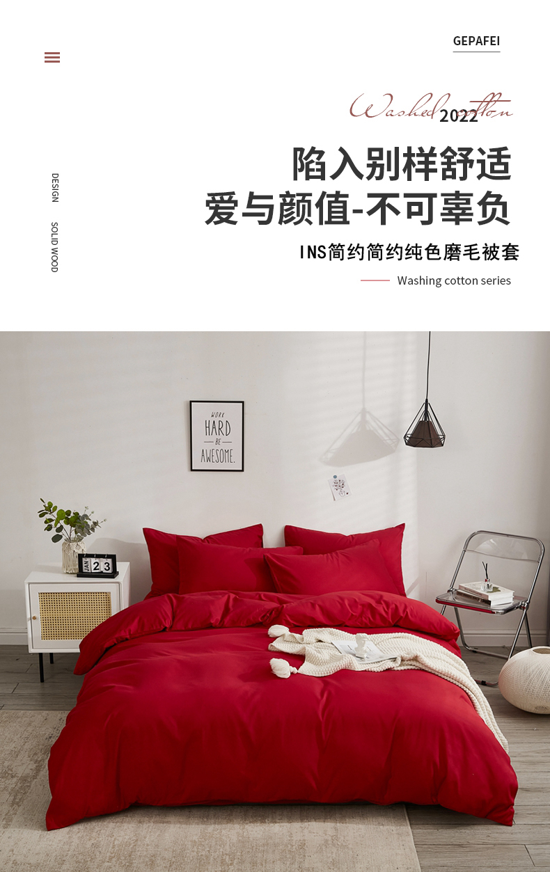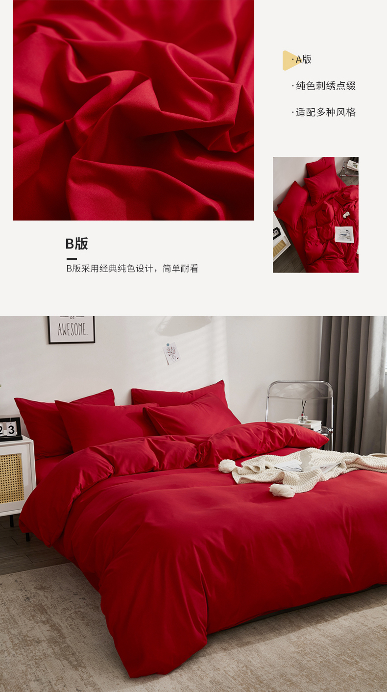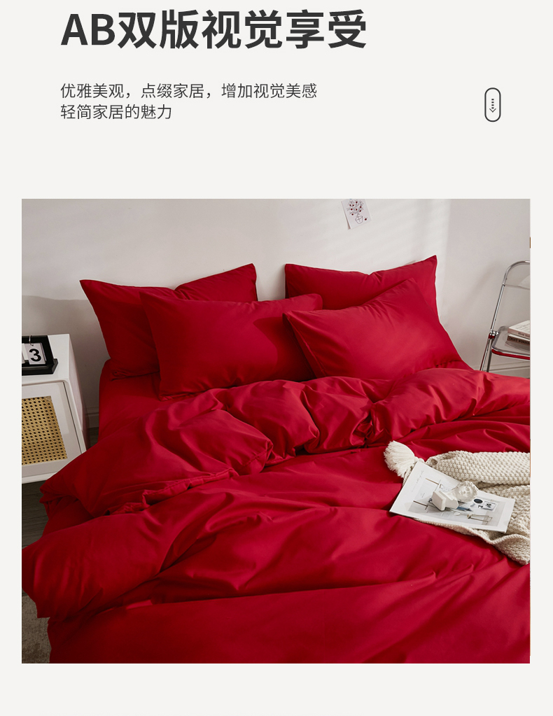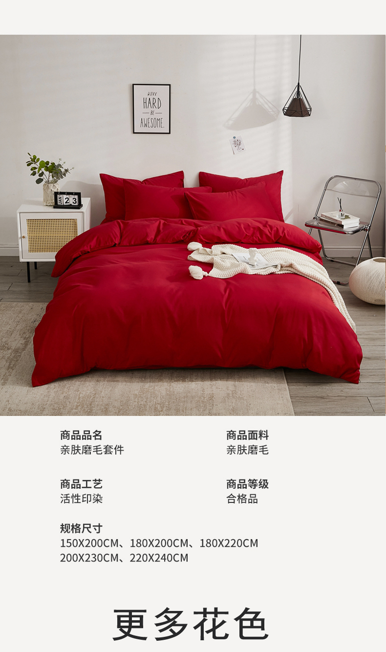 商品名称:啊雅家居 2026新款ins简约纯色磨毛被套可订制logo 红色