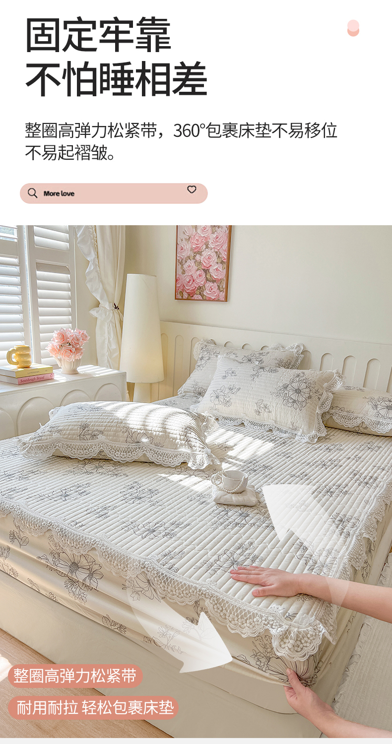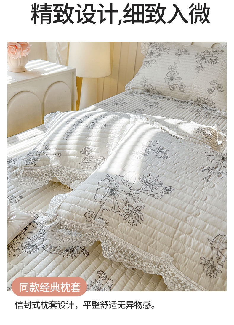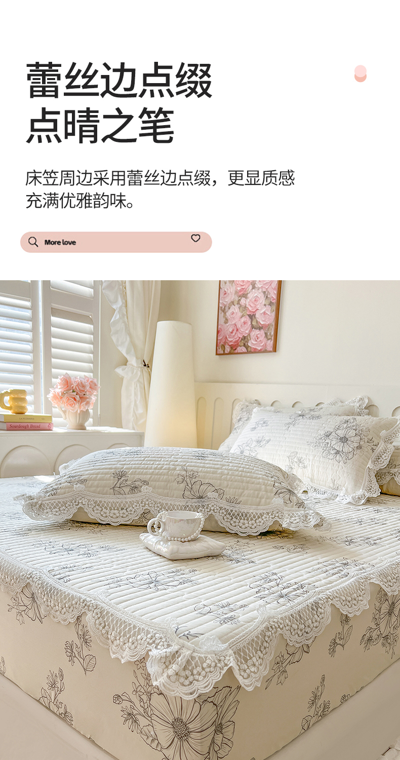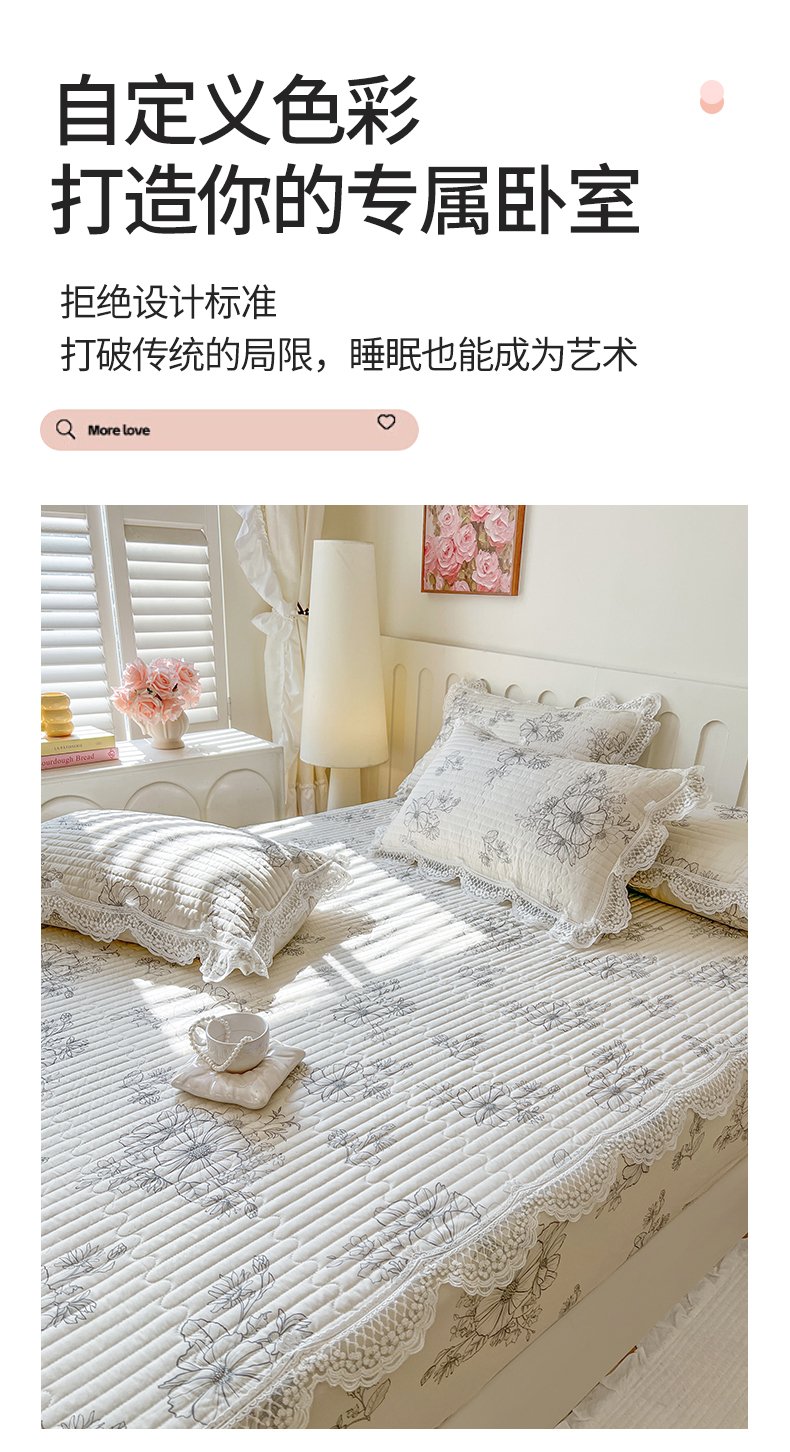 (总)网红馆(ck家纺) 2026新款全棉蕾丝花边床裙款床笠晨暮花间系列,绯红,粉色,麦绿,米色,浅紫,雾蓝