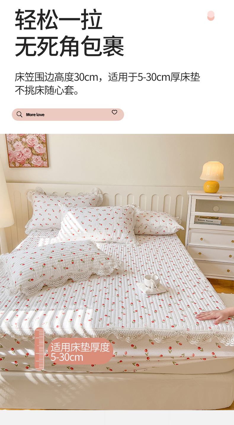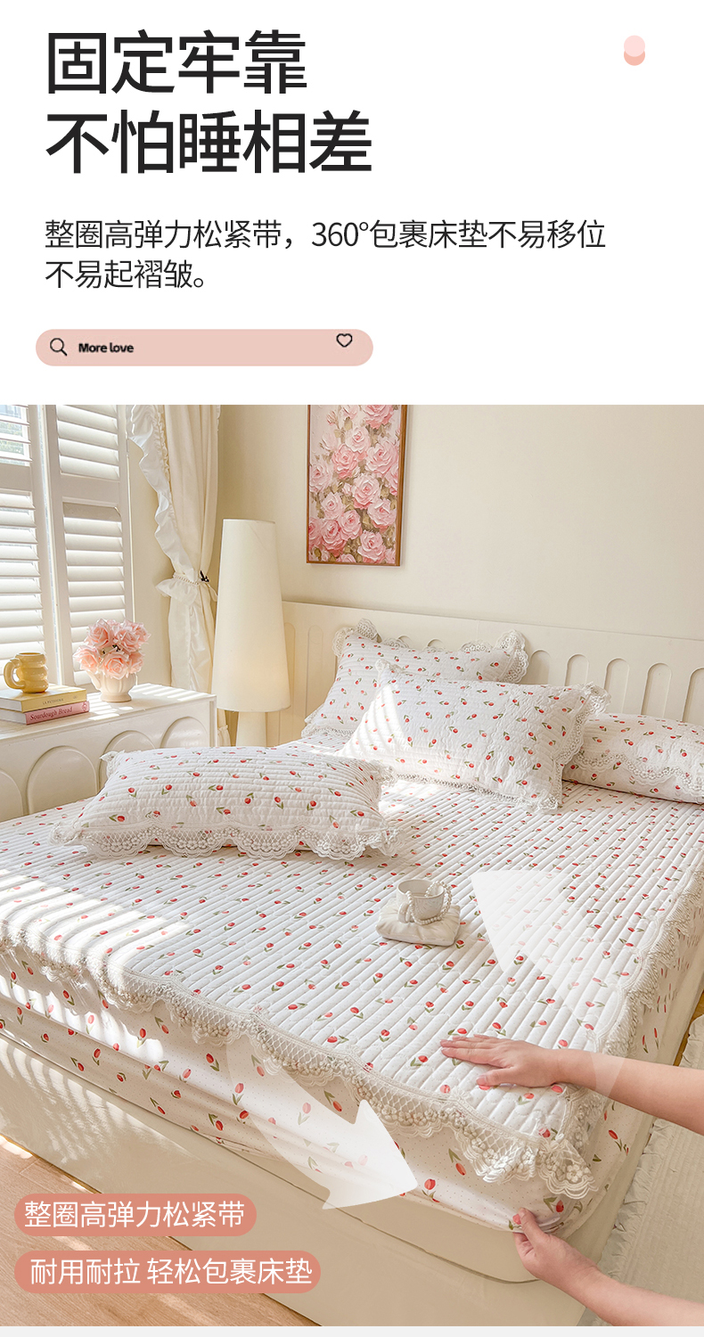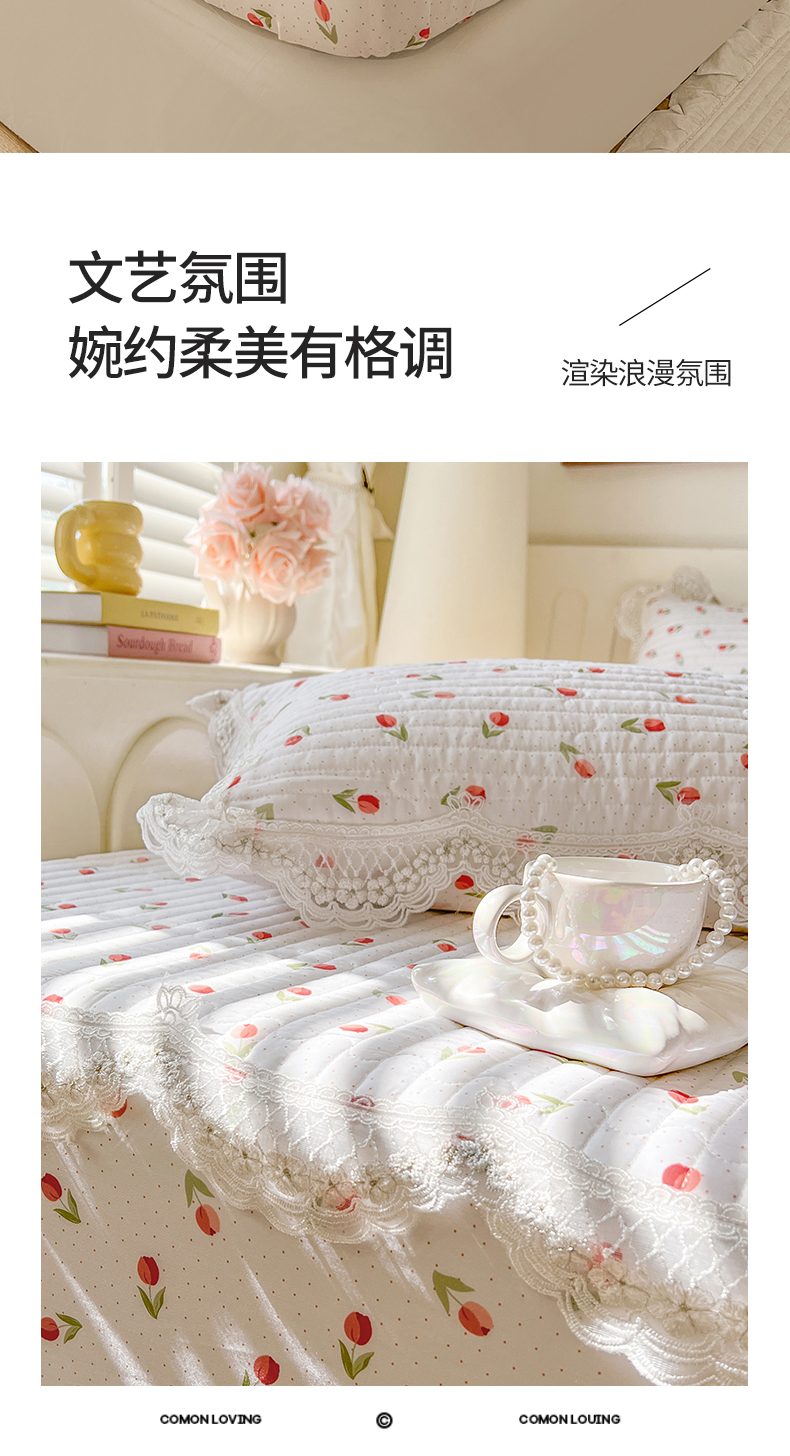 (总)网红馆(ck家纺) 2026新款全棉蕾丝花边床裙款床笠晨暮花间系列,绯红,粉色,麦绿,米色,浅紫,雾蓝