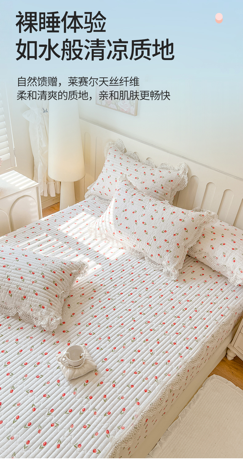 (总)网红馆(ck家纺) 2026新款泡泡棉印花床笠三件套,花儿朵朵,花莫,甜心草莓,小清新,熊宝宝,悠悠花海,紫色恋人