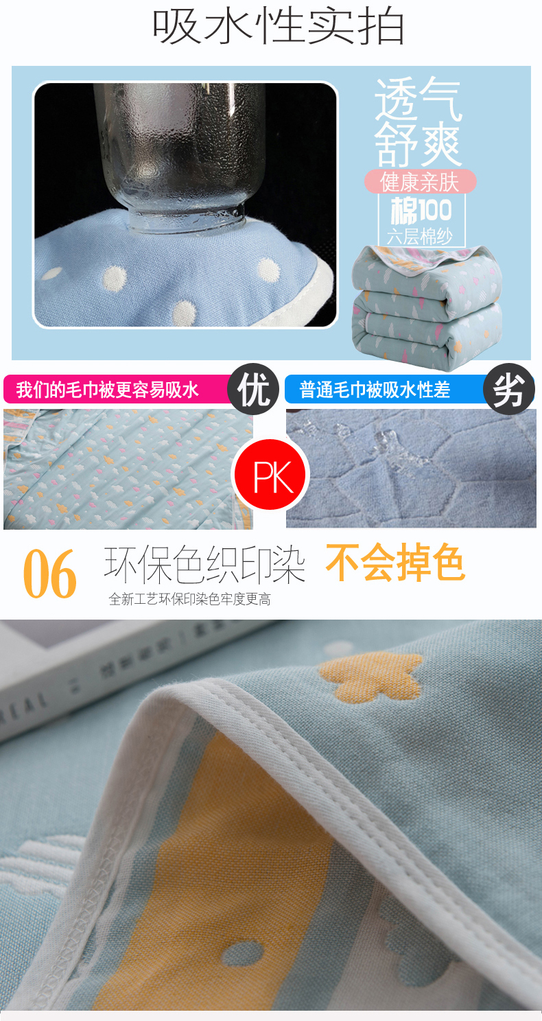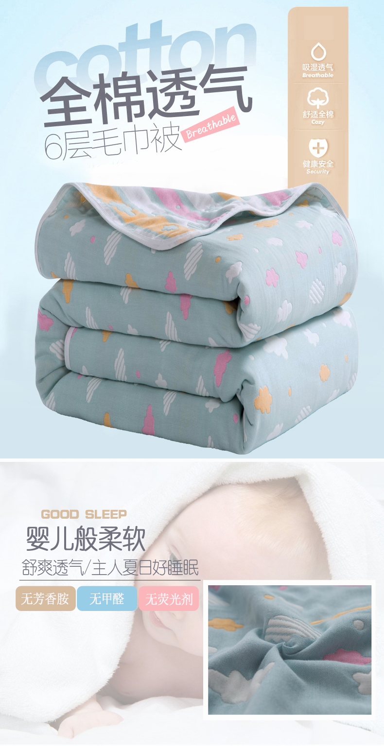 商品名称:朴尔家纺-毛巾被 2026春夏新款全尺寸经典六层纱布全棉纯棉毛巾被系列夏被夏凉被空调被 彩云-兰