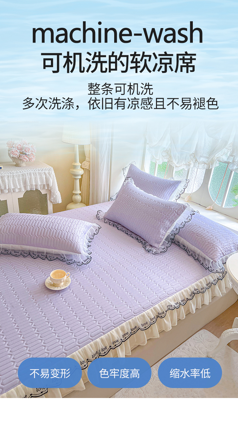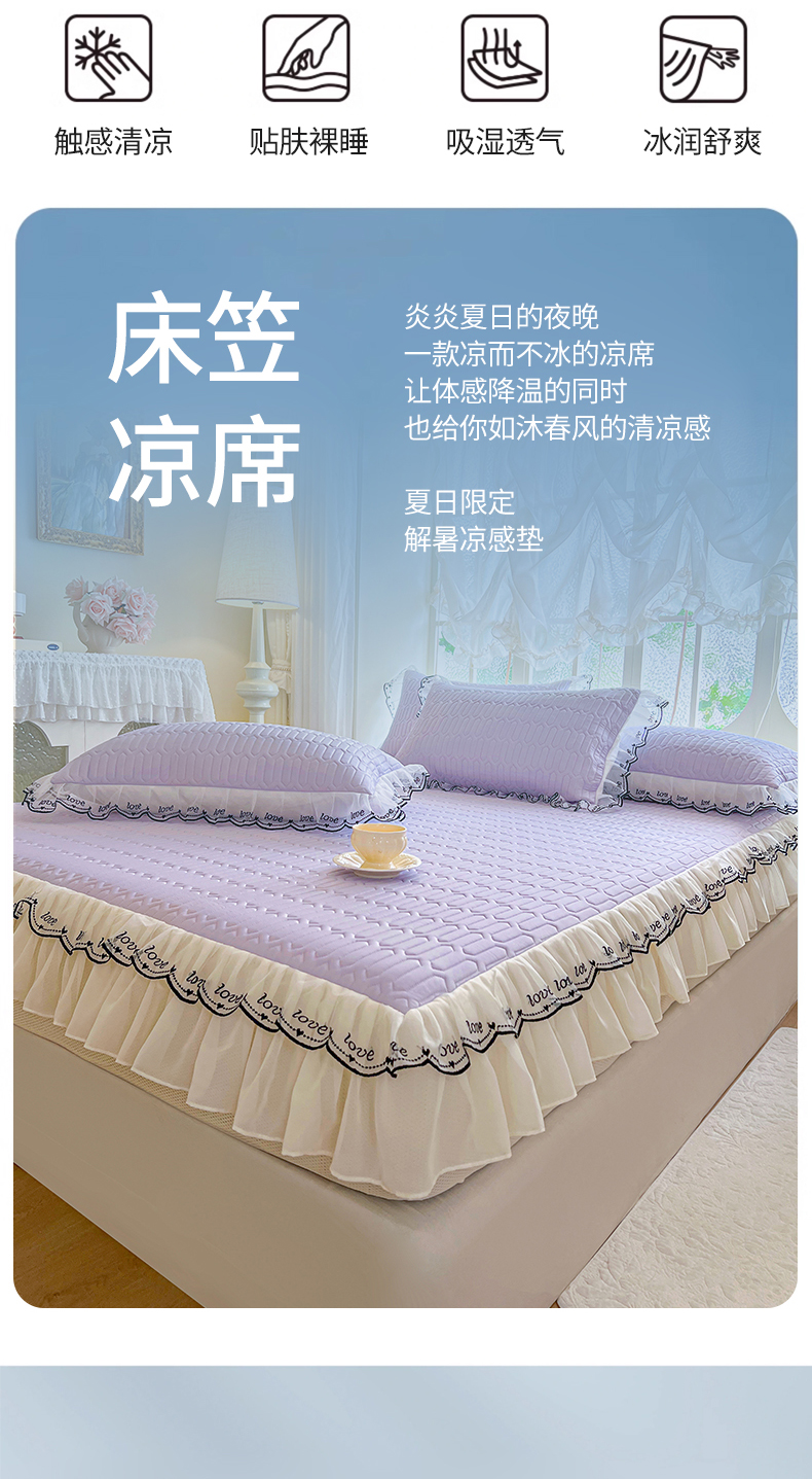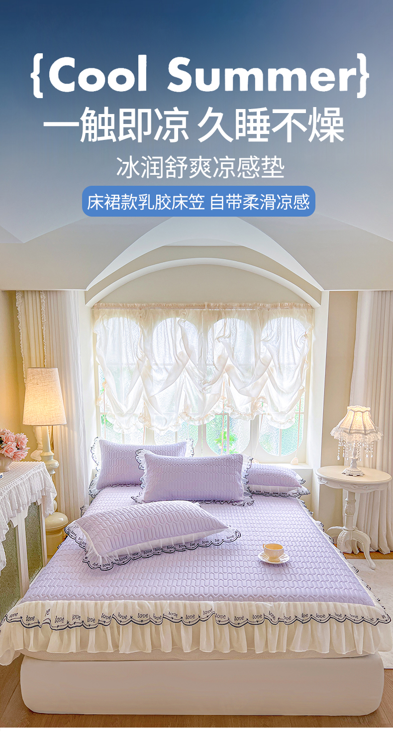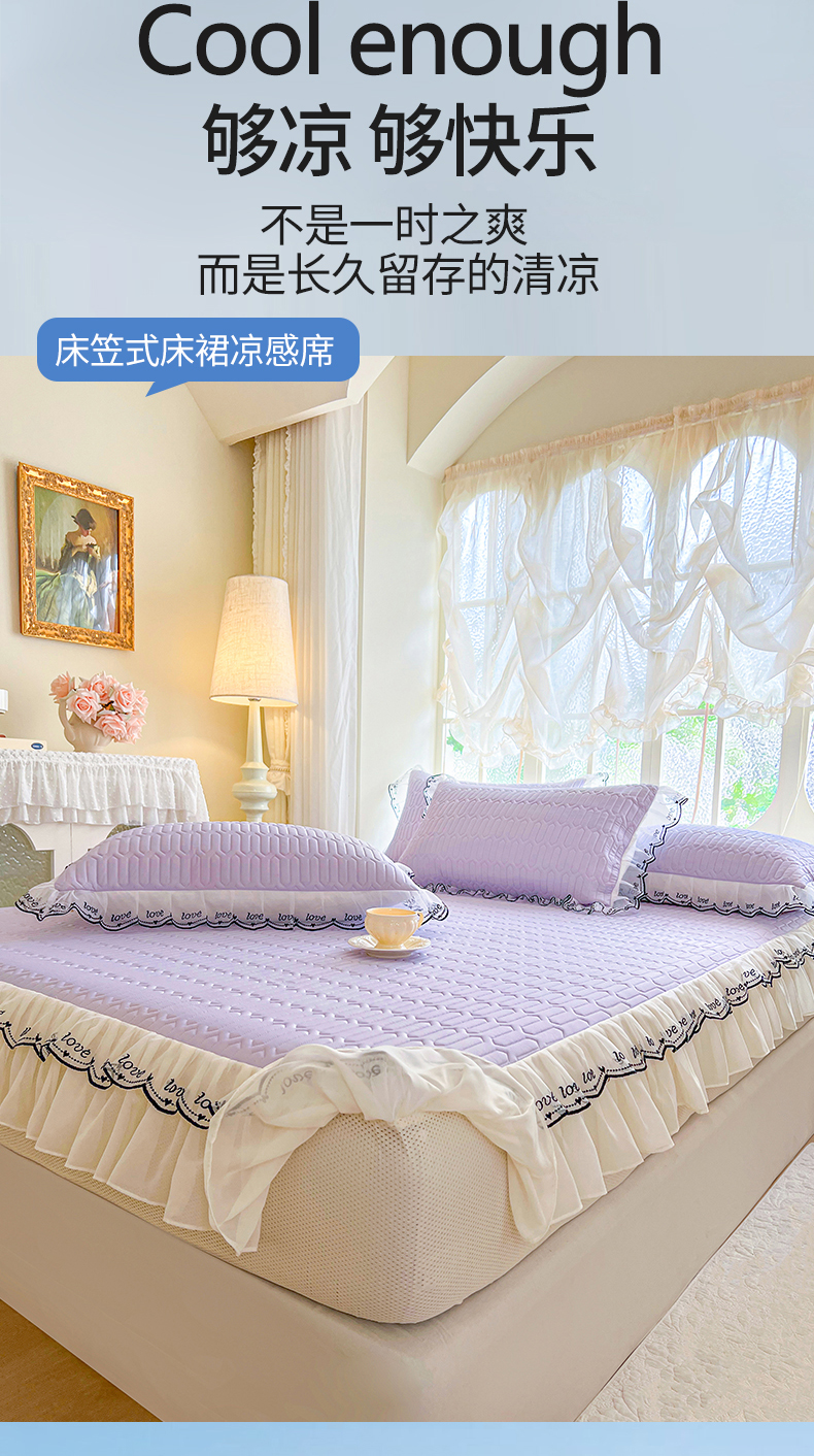 商品名称:网红馆(ck家纺) 2026新款凉感丝床笠式床裙乳胶凉席三件套-露娜 露娜-紫