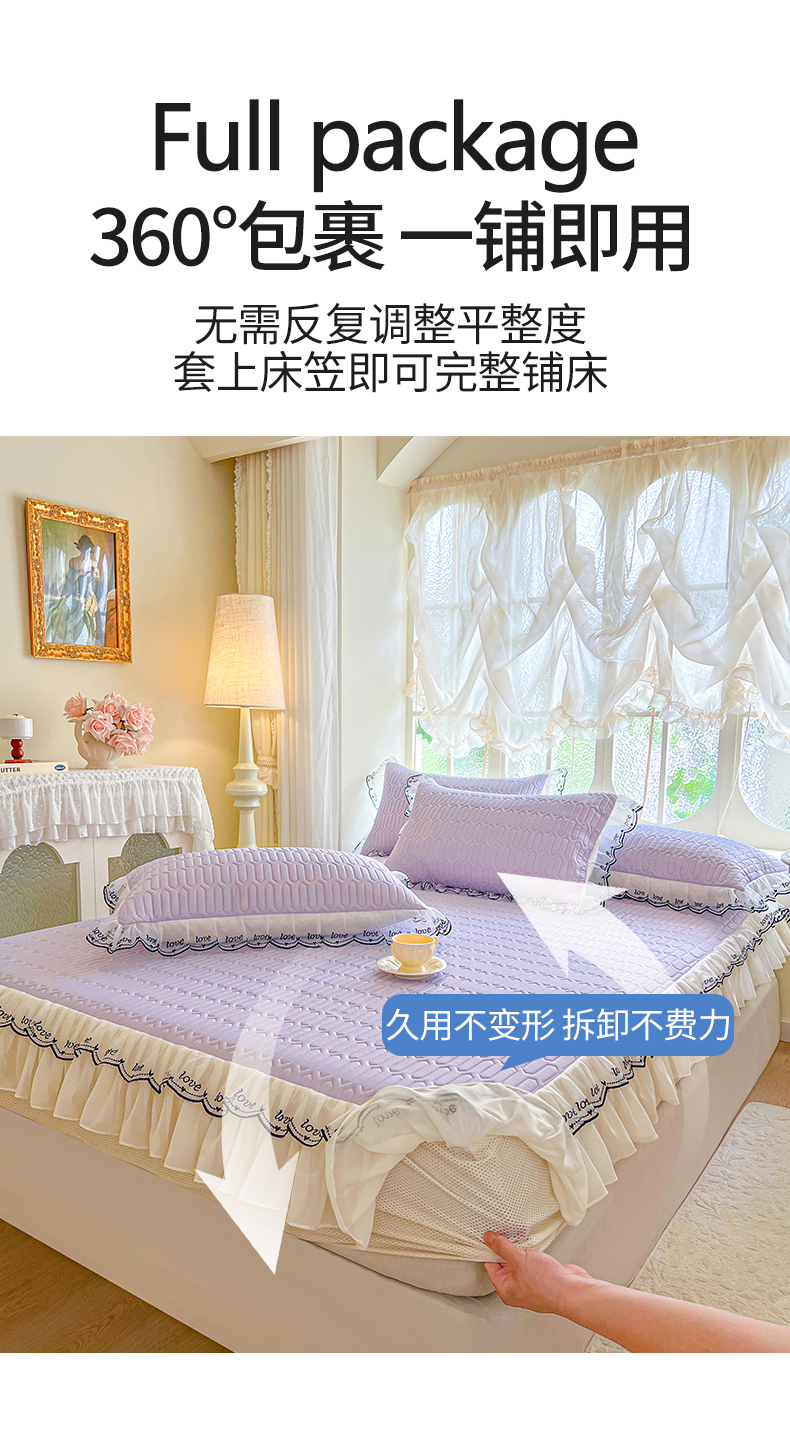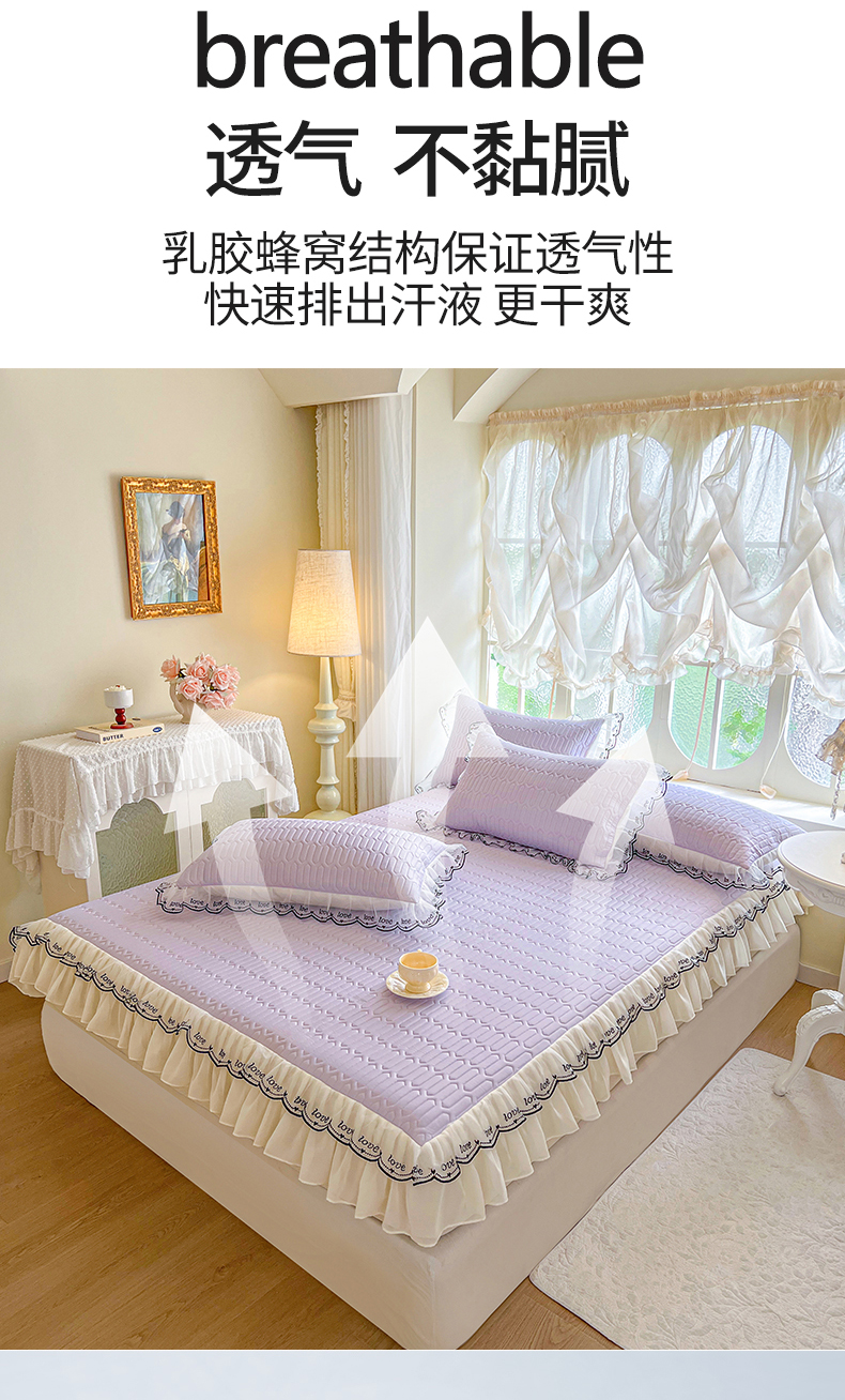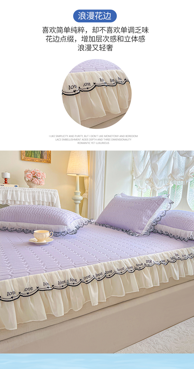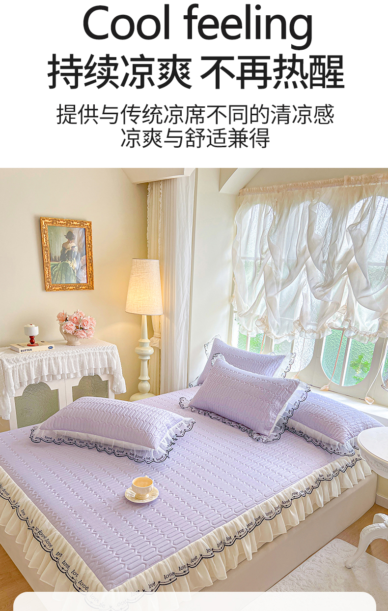 商品名称:网红馆(ck家纺) 2026新款凉感丝床笠式床裙乳胶凉席三件套-露娜 露娜-紫