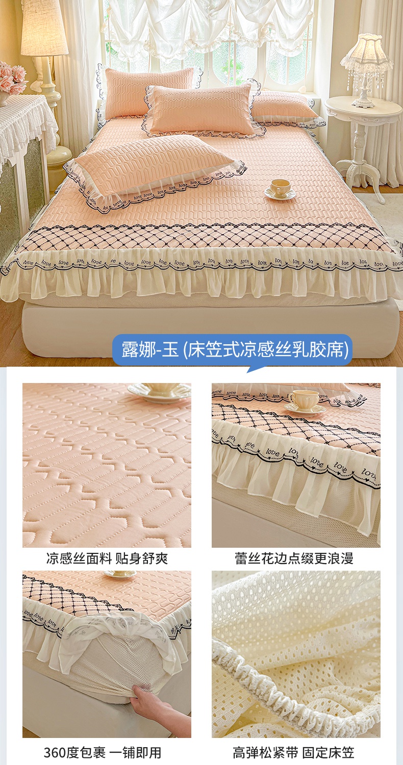 网红馆(ck家纺) 2026新款凉感丝床笠式床裙乳胶凉席三件套-露娜 露娜-紫