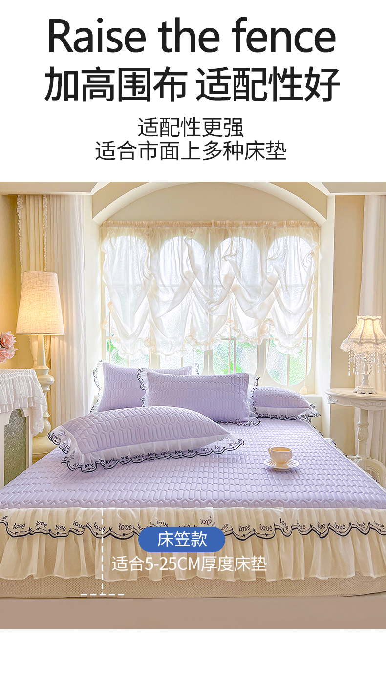 (总)网红馆(ck家纺) 2026新款色织蕾丝边床裙款床笠,宝石蓝,黛绿色,浪漫紫,奶茶色,石青,香妃粉,烟熏灰