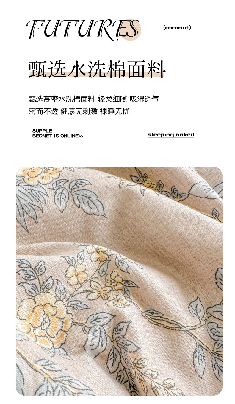 • 91家纺网 家纺一手货源 找家纺 (总)慕澄家纺 2026新款小清新印花水洗棉床盖单品床盖床盖单件,组合图仅做展示不可下单,彩色南瓜,敦煌,灰叶,可爱小熊,蓝花樱桃,绿尧,汀兰,小玫瑰