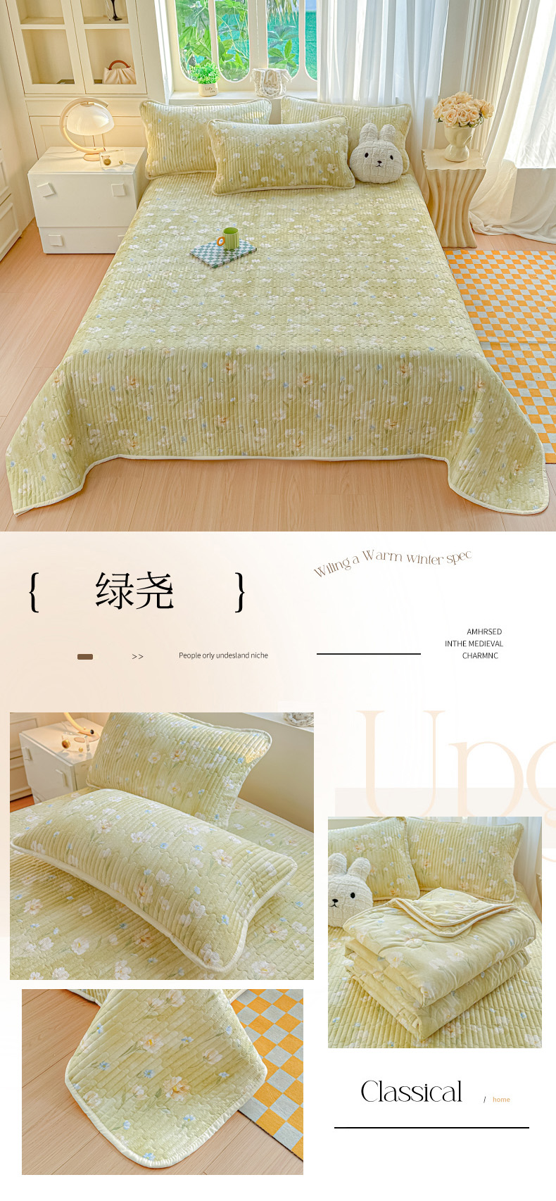 (总)慕澄家纺 2026新款高克重仿棉碎花床盖,午后,春来,花间小马,蓝梦,漫漫,梦回,绵绵,情书,小白花
