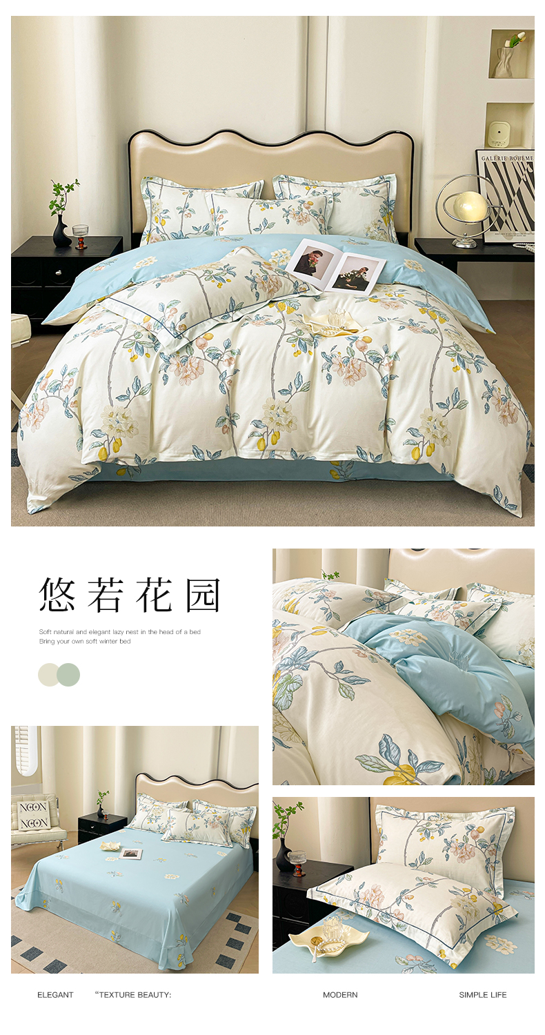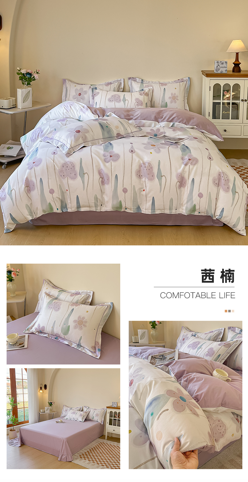 当前位置: 91家纺网 > 商品网购 > 床品套件 > 四件套 > 全棉普通四件套 > 帛美家纺 2026新款小清新全棉纯棉印花四件套 晓城时光