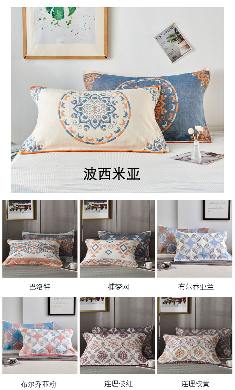 朴尔家纺-毛巾被 2026新款波西米亚风全棉四层纱布枕巾 巴洛特