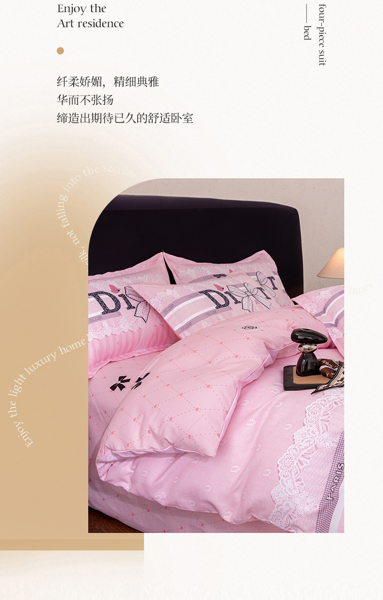 商品名称:(总)宝薇 2026新款潮牌轻奢风加厚斜纹磨毛大版四件套