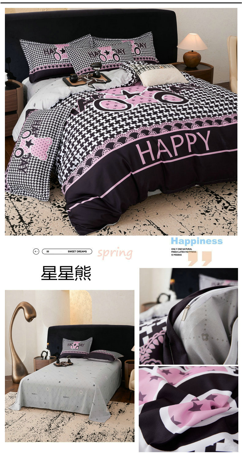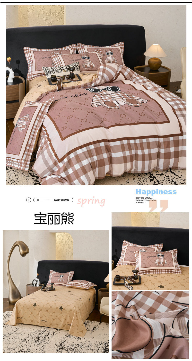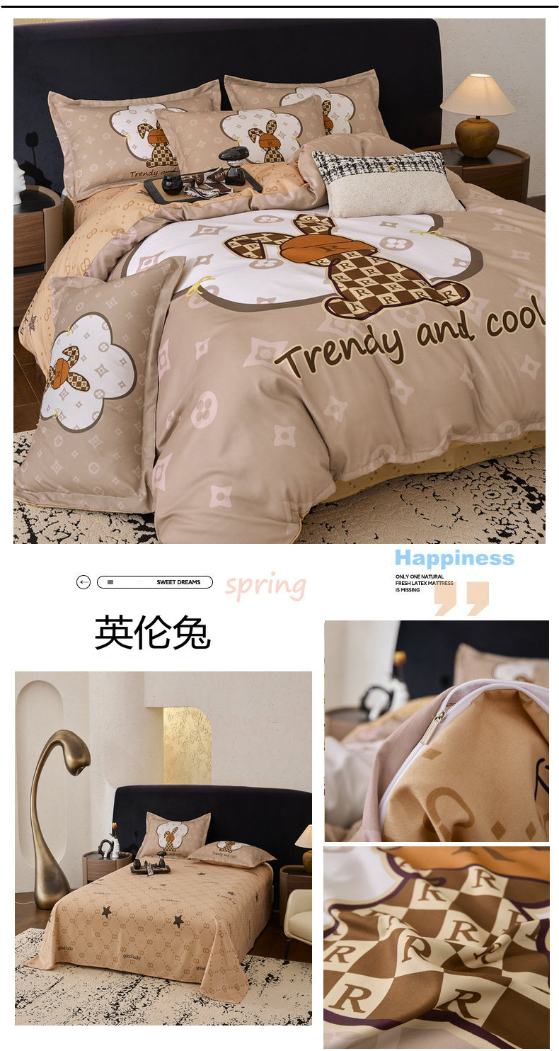 (总)宝薇 2026春夏新款7D卡通加厚斜纹仿棉生态磨毛大版四件套,大白兔,繁星,好运松鼠,欢乐时光,梨花开,玫瑰兔,萌萌熊,牵手熊,太空人,天使兔,甜心兔,月亮兔