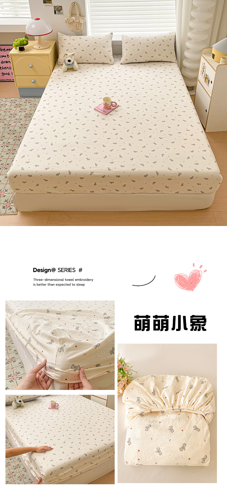 • 91家纺网 家纺一手货源 找家纺 立森 2026春夏新款云感皱皱纱泡芙纱床笠单枕套系列-床拍图 铅笔熊,铅笔熊