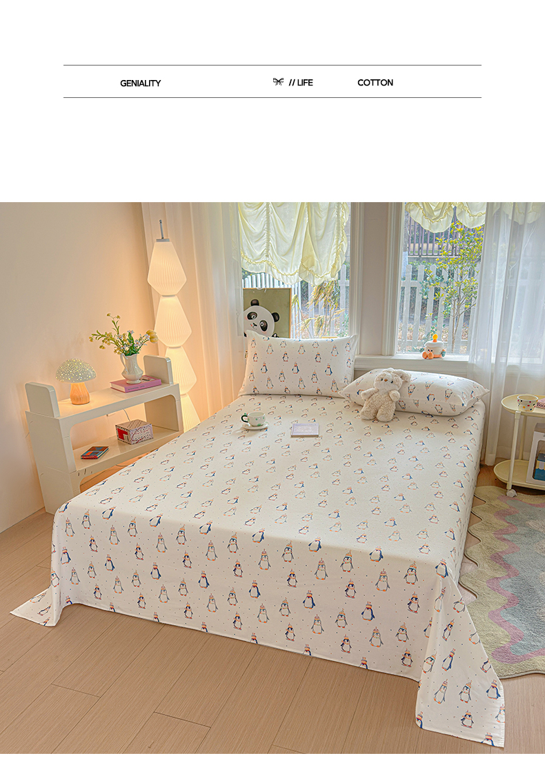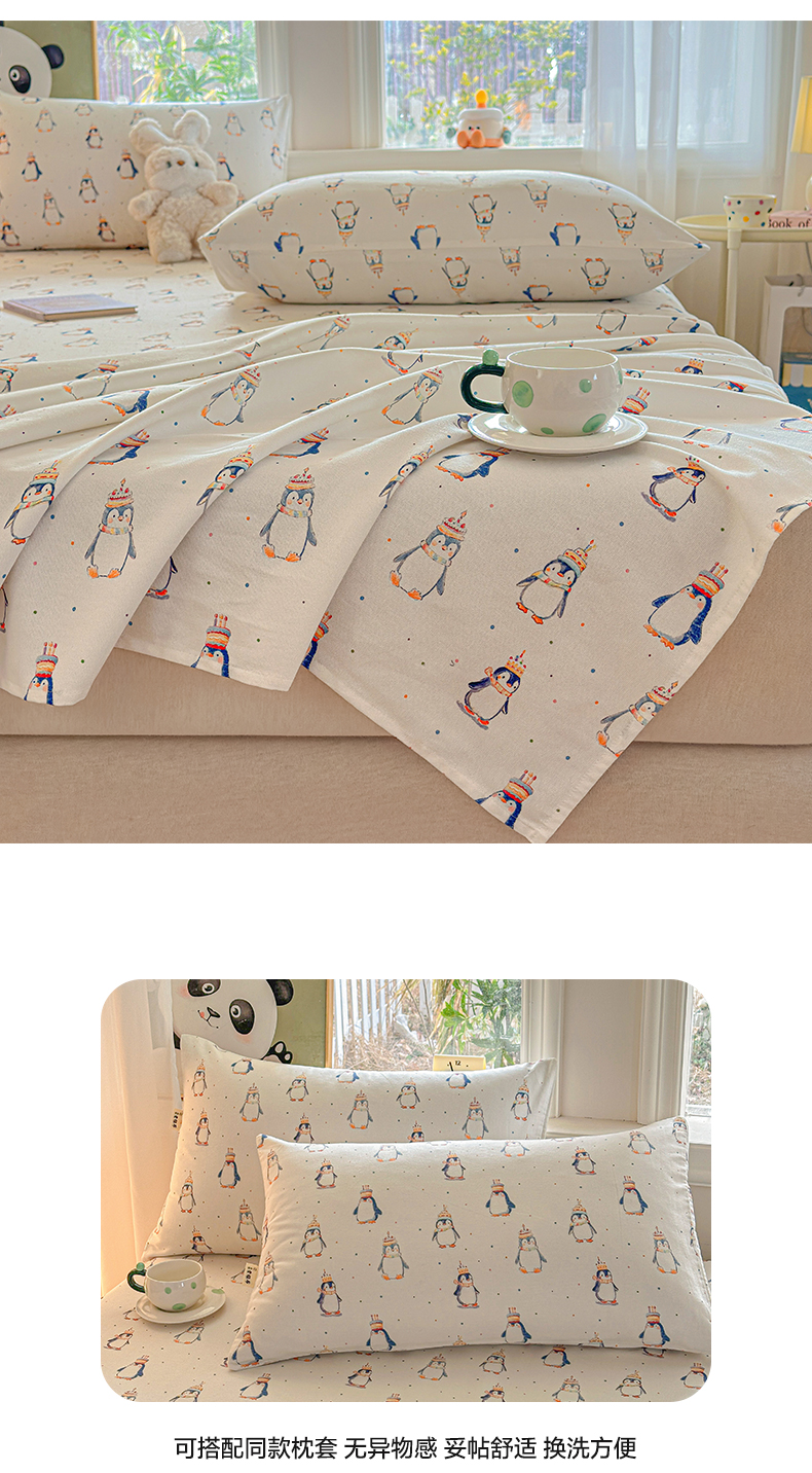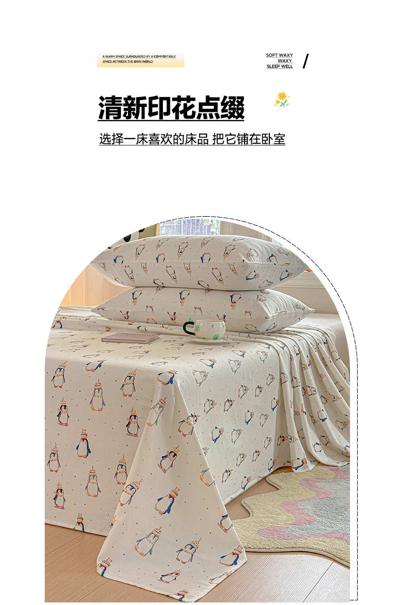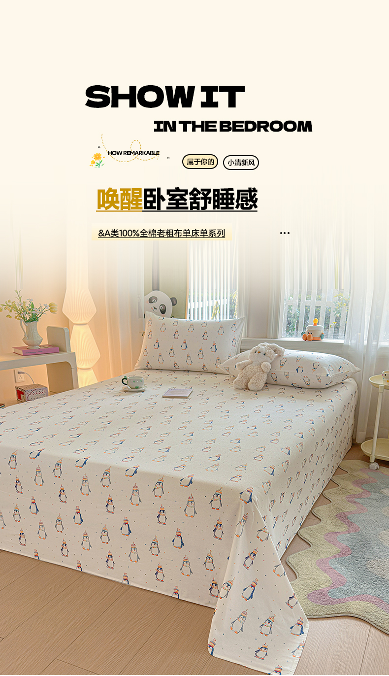 商品名称:莱登卡奴 2026新款A类100%全棉纯棉老粗布单床单系列 企鹅