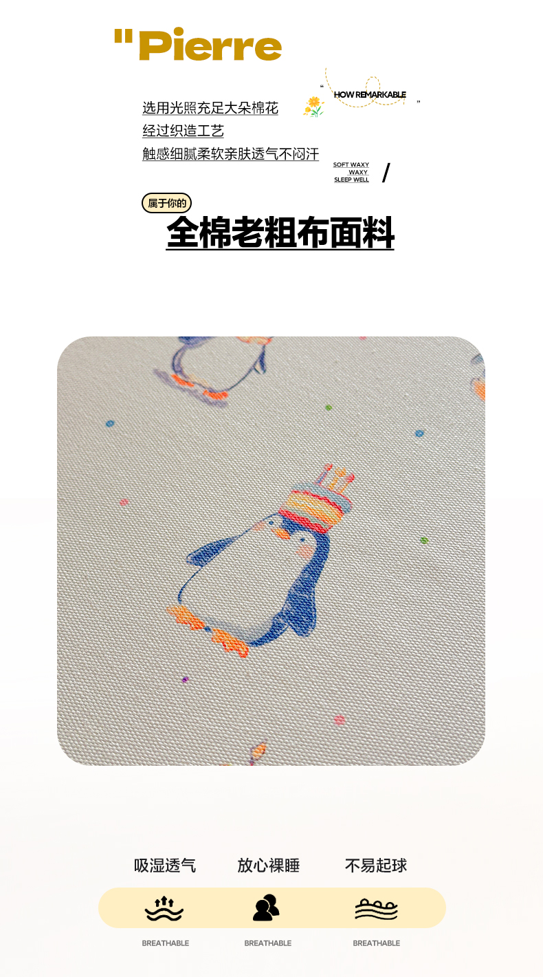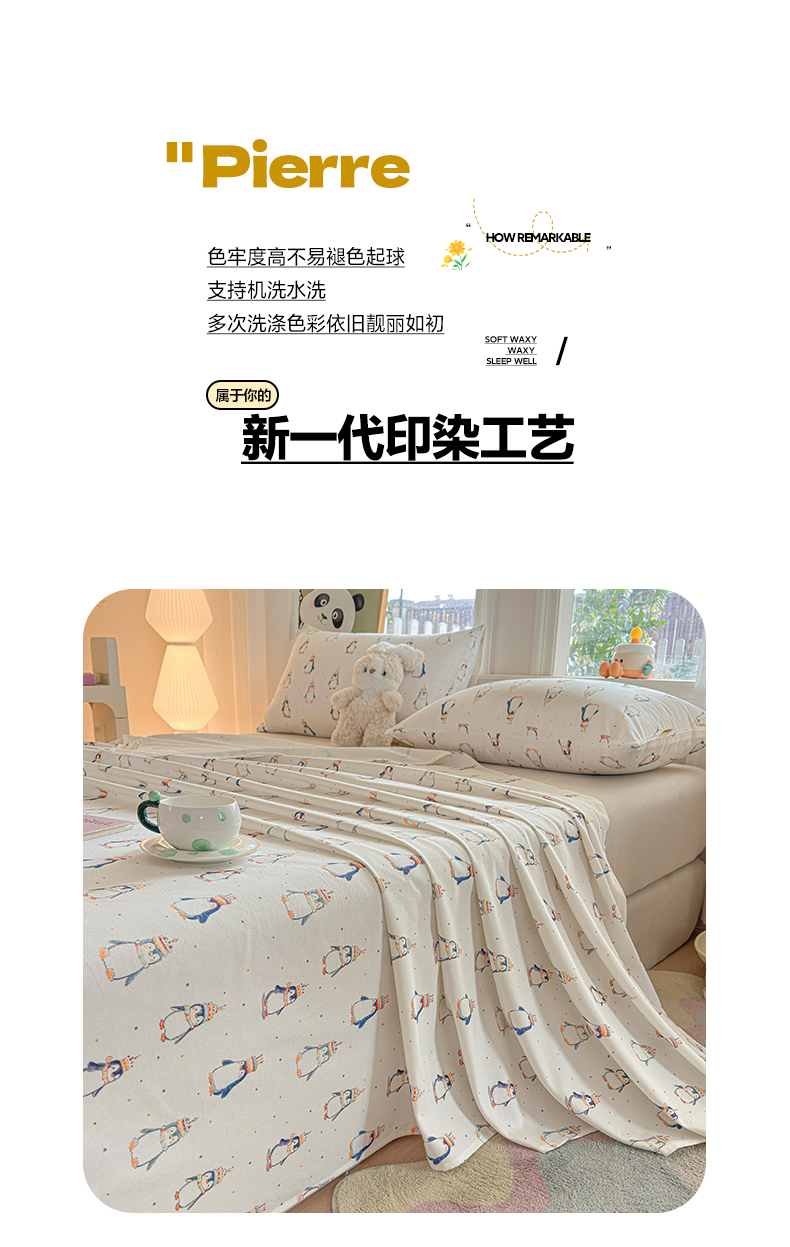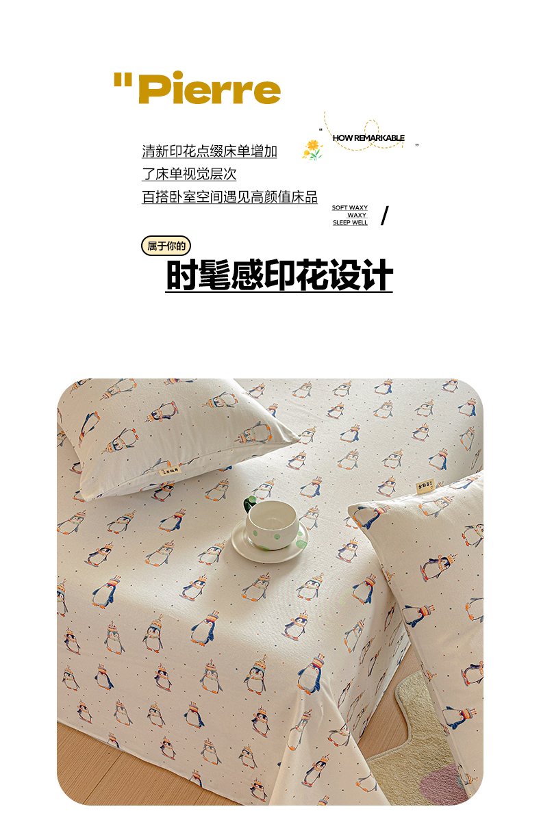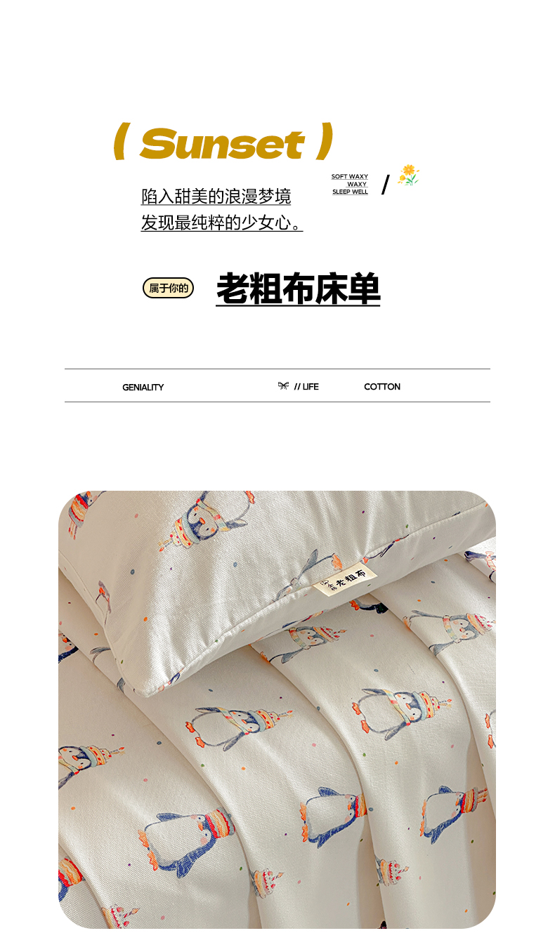 商品名称:莱登卡奴 2026新款A类100%全棉纯棉老粗布单床单系列 企鹅