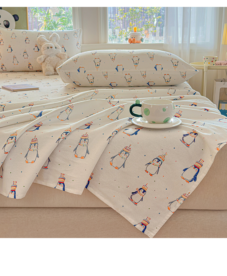 莱登卡奴 2026新款A类100%全棉纯棉老粗布单床单系列 企鹅