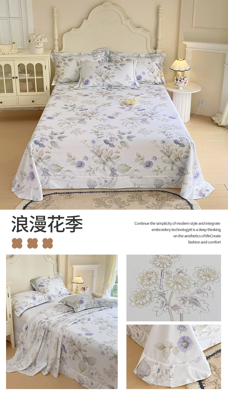 (总)宝齐莱家纺 2026新款全棉纯棉活性印花单床单床单单件,公主乐园,花姿漫,蓝色梦幻,浪漫花季,梦幻城堡,云裳仙子,花开锦绣,花知晓,玫瑰的故事,梦想家,时光记忆,忆江南,月光森林