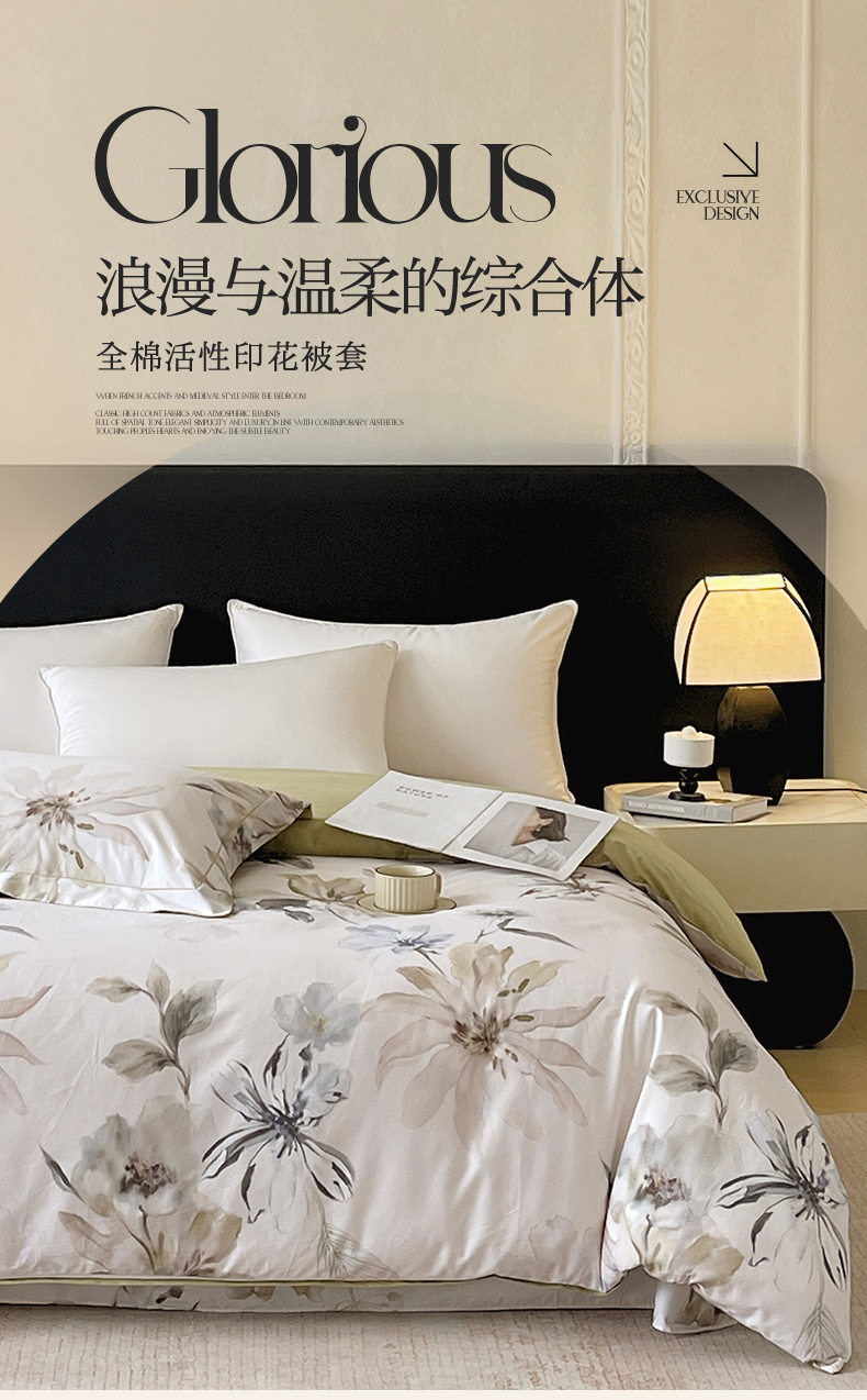 • 91家纺网 家纺一手货源 找家纺 宝齐莱家纺 2026新款全棉纯棉活性印花单被套被套单件单品被套 花知晓