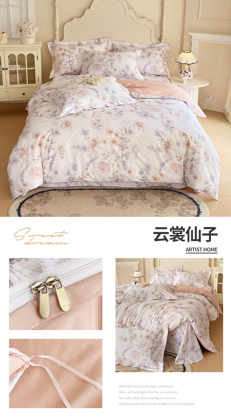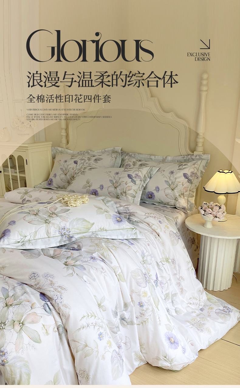 当前位置: 91家纺网 > 商品网购 > 床品套件 > 四件套 > 全棉普通四件套 > 宝齐莱家纺 2026新款全棉纯棉活性印花四件套 浪漫花季