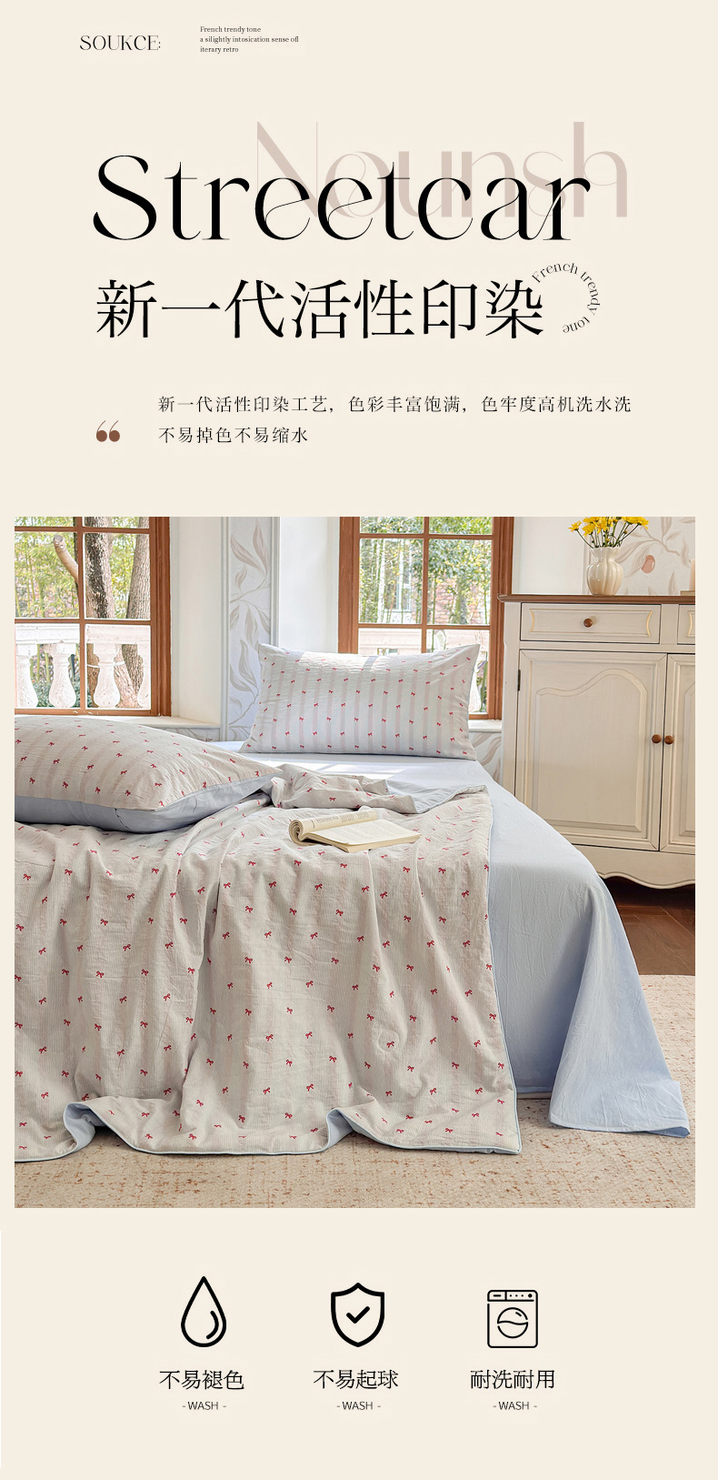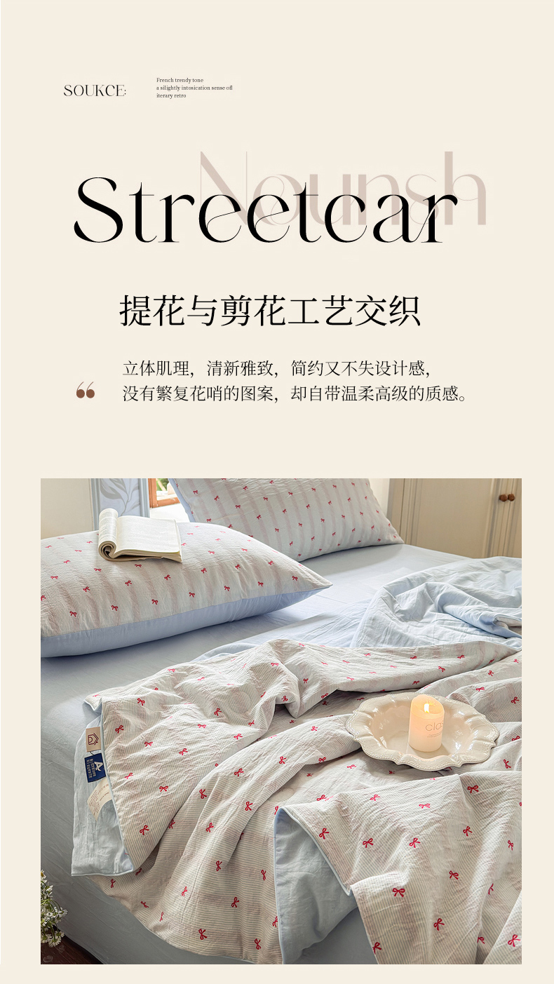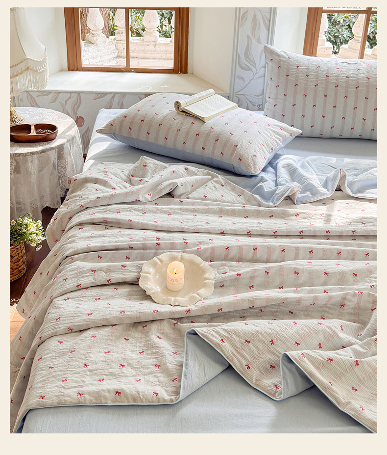 当前位置: 91家纺网 > 商品网购 > 床品套件 > 四件套 > 夏被四件套 > 木楌家居 2026新款全棉提花剪花夏被四件套 组合