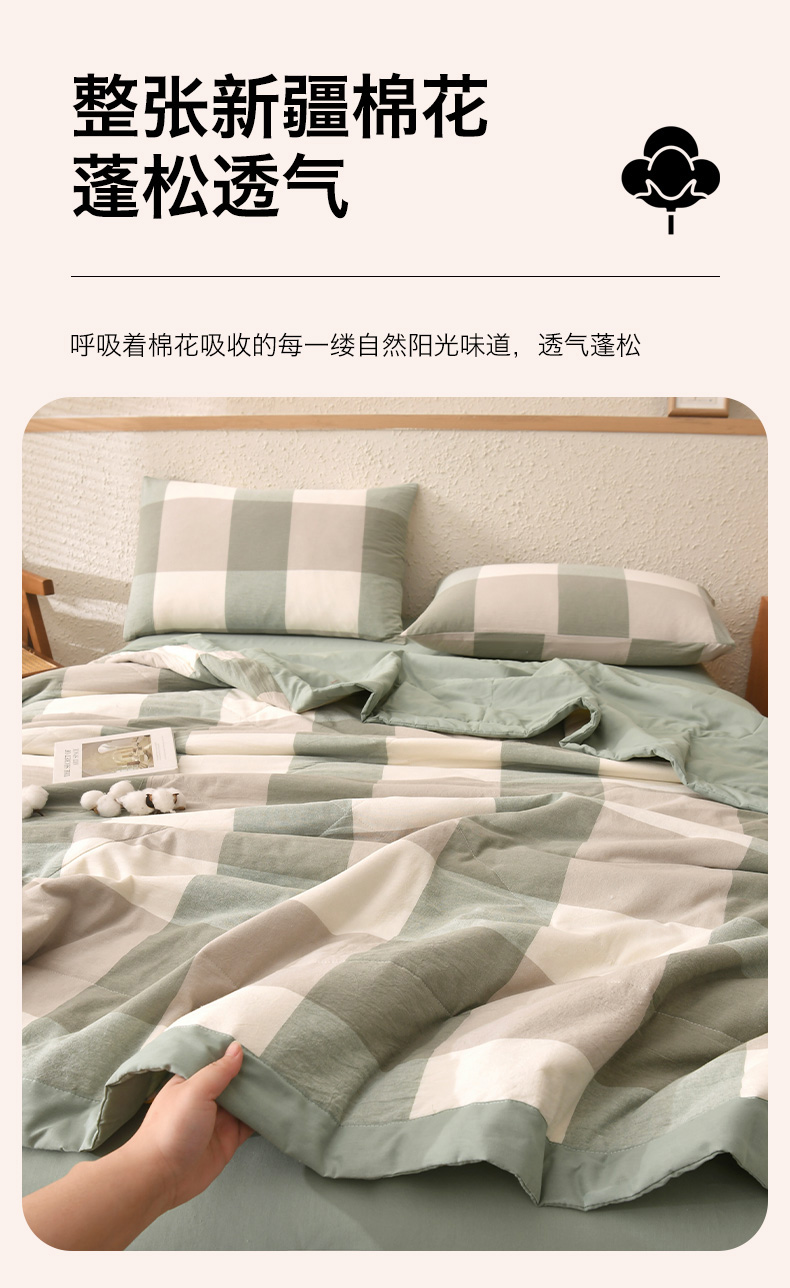当前位置: 91家纺网 > 商品网购 > 被子 > 夏被 > 培童家纺 2026新款全棉色织水洗棉A类棉花夏被可机洗空调被四件套床单枕套 绿大格