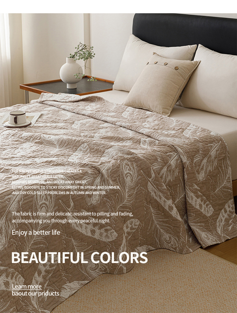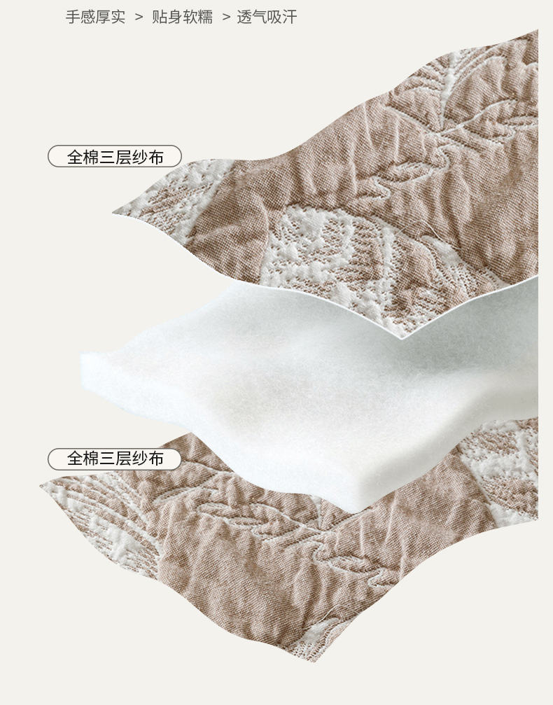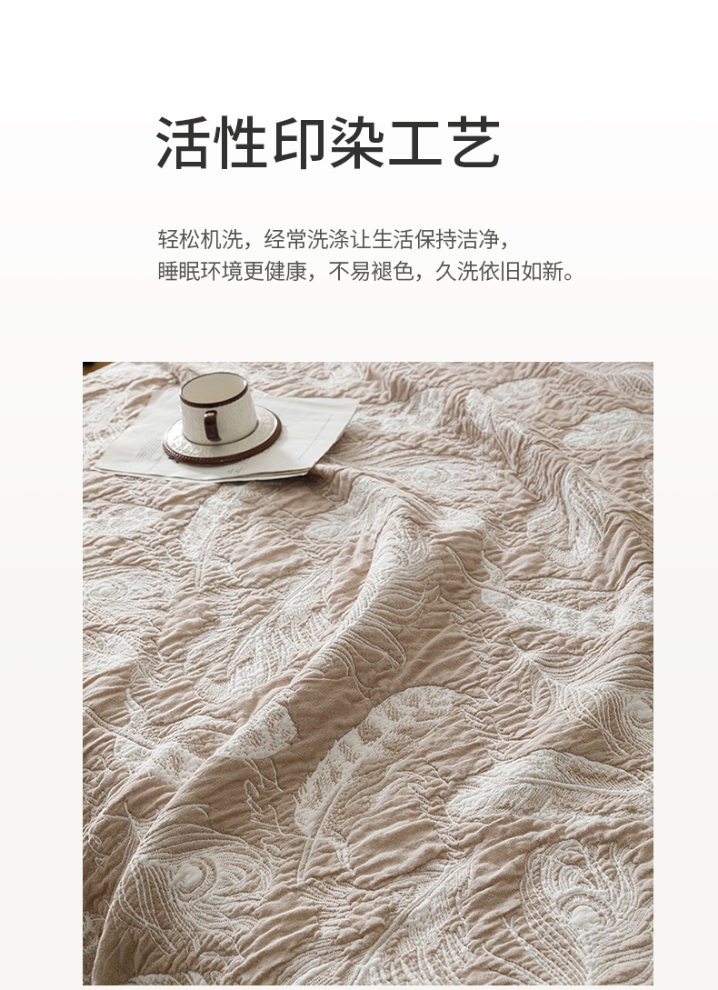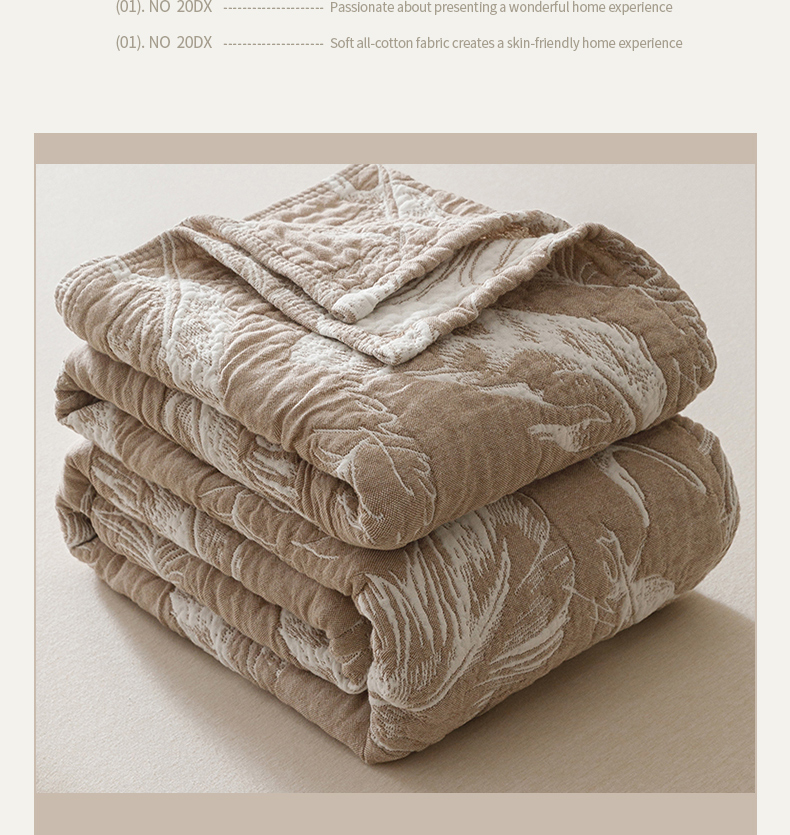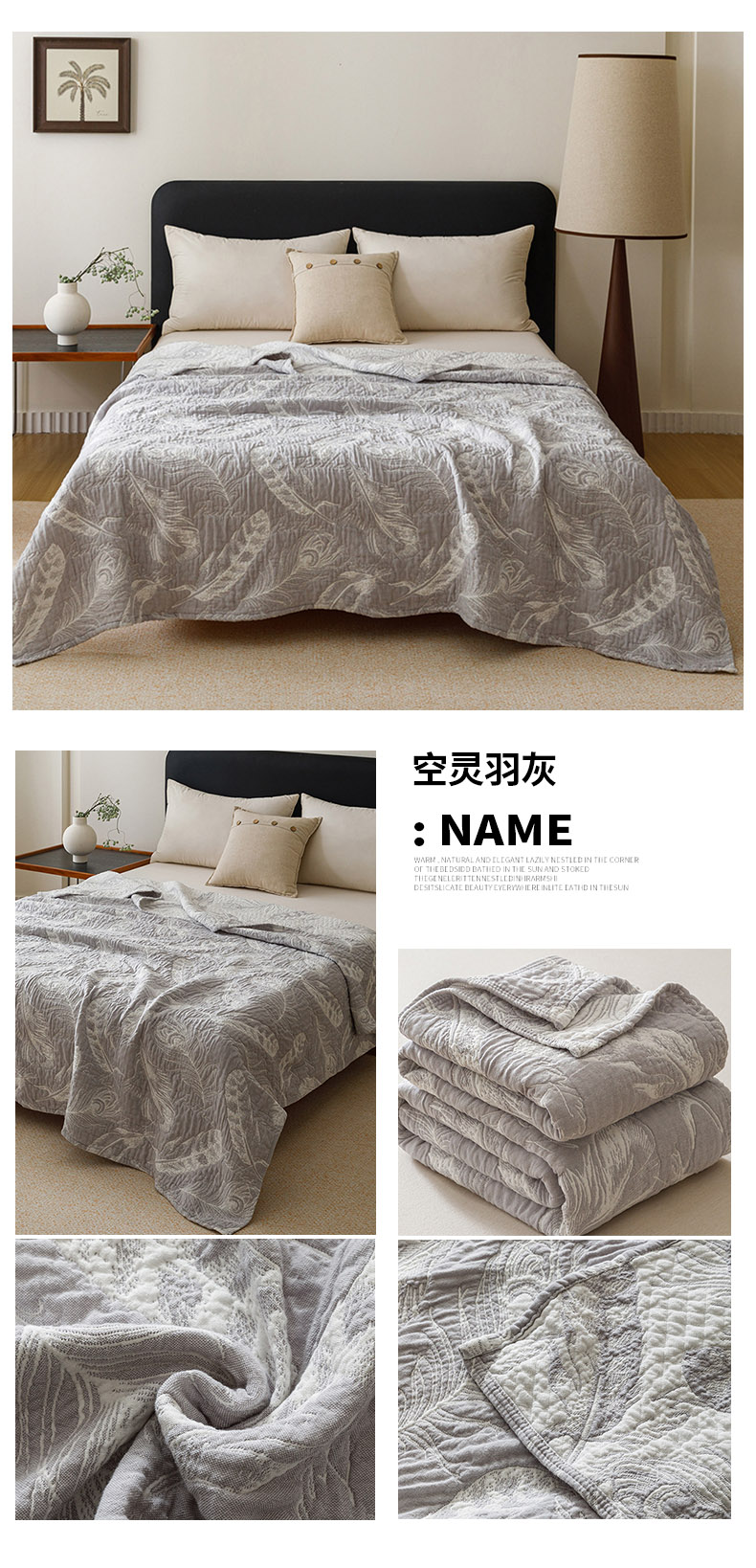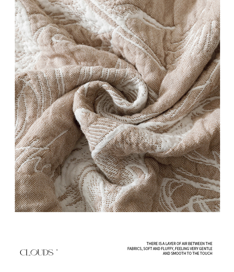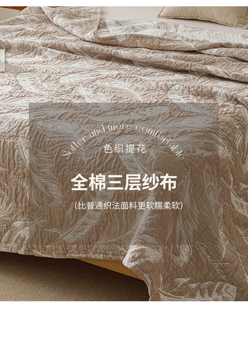 商品名称:悦然毛巾被 2026新款外贸全棉三层纱布毛巾被盖毯 空灵羽咖