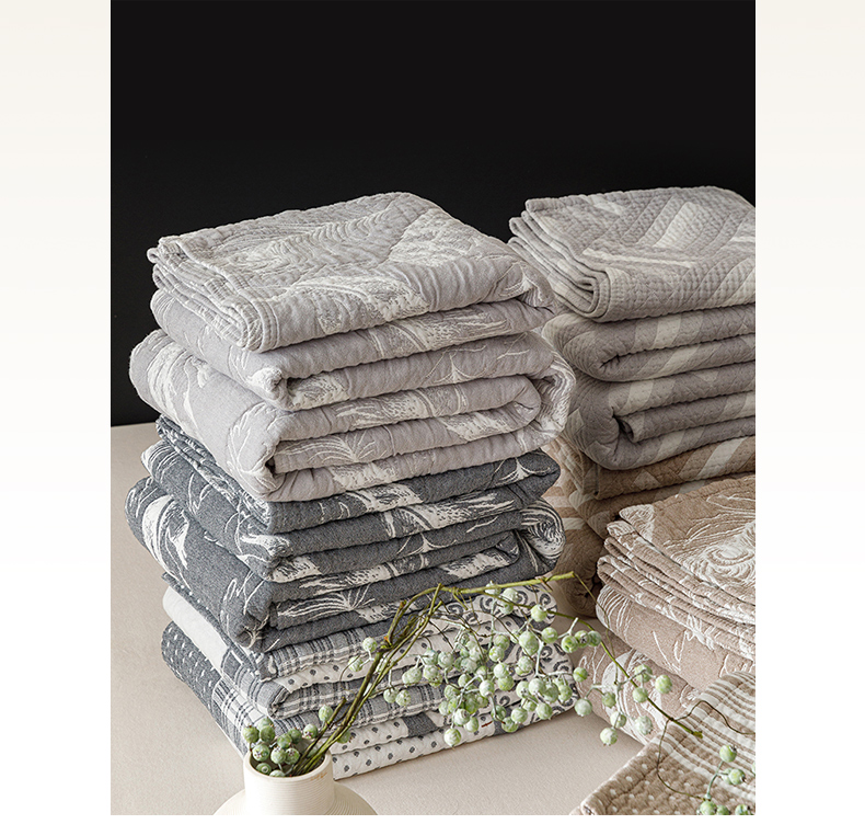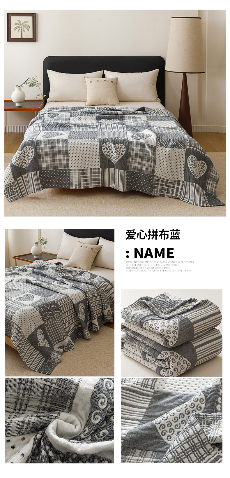 (总)悦然毛巾被 2026新款外贸全棉三层纱布毛巾被盖毯,爱心拼布灰,爱心拼布咖,爱心拼布蓝,空灵羽灰,空灵羽咖,空灵羽蓝,迷宫格咖,迷宫灰,迷宫蓝,组合