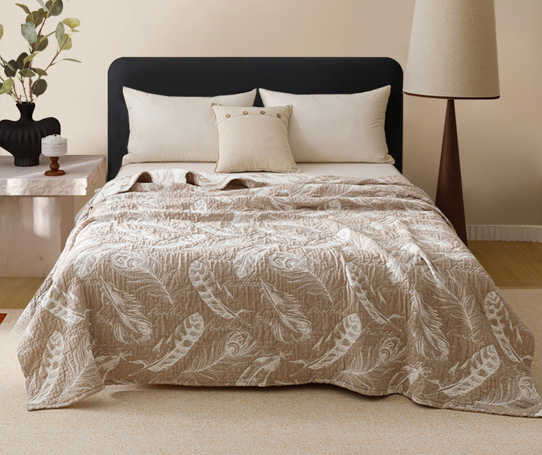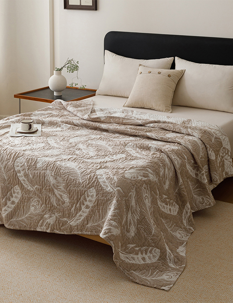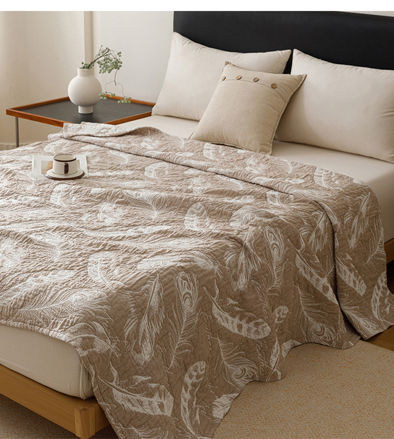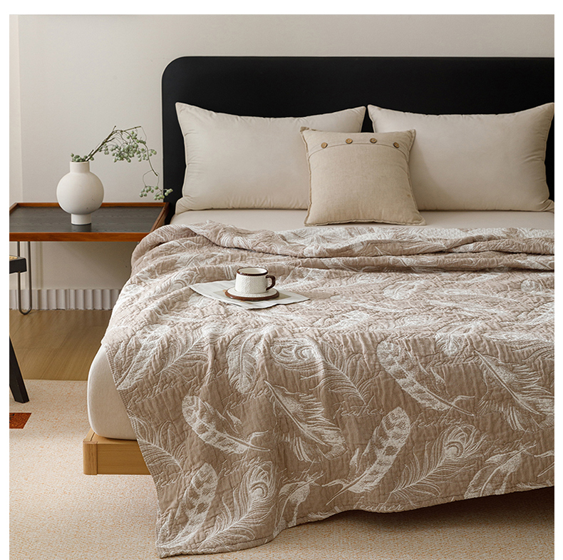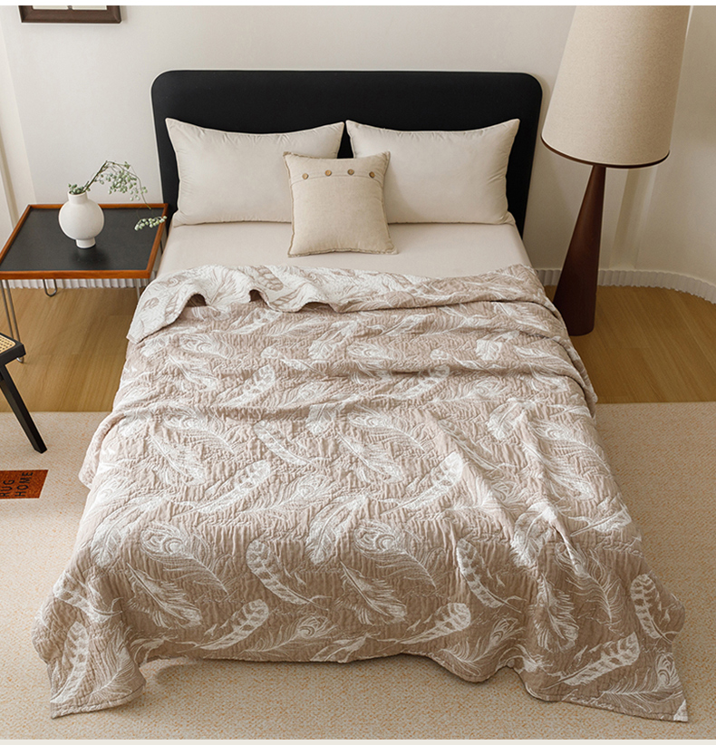 悦然毛巾被 2026新款外贸全棉三层纱布毛巾被盖毯 空灵羽咖