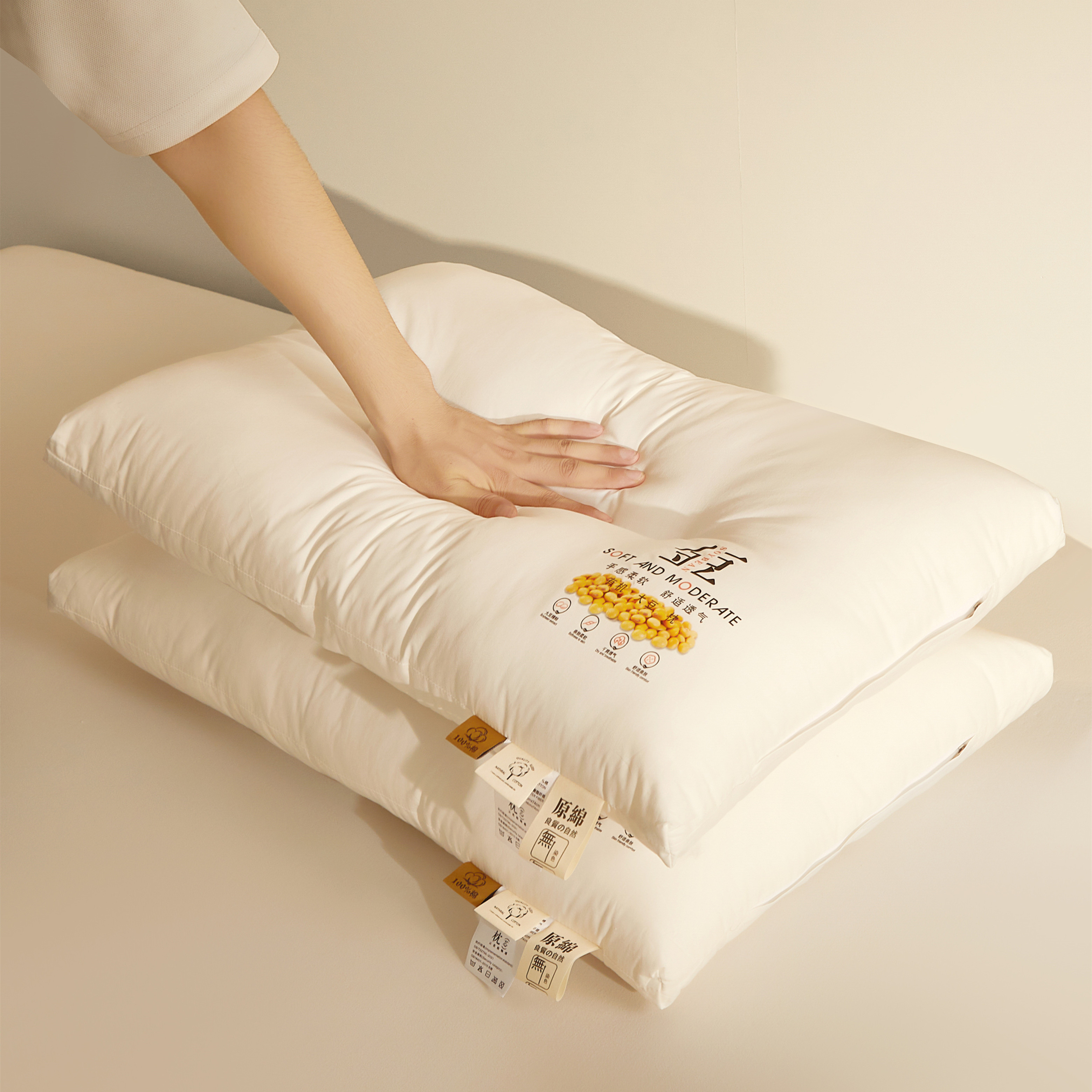 (总)小桃姐家纺 2025新款全棉纯棉金豆枕枕头枕芯高中低三款,金豆-低枕,金豆-中枕,金豆-高枕