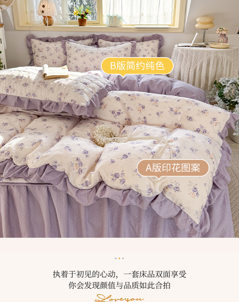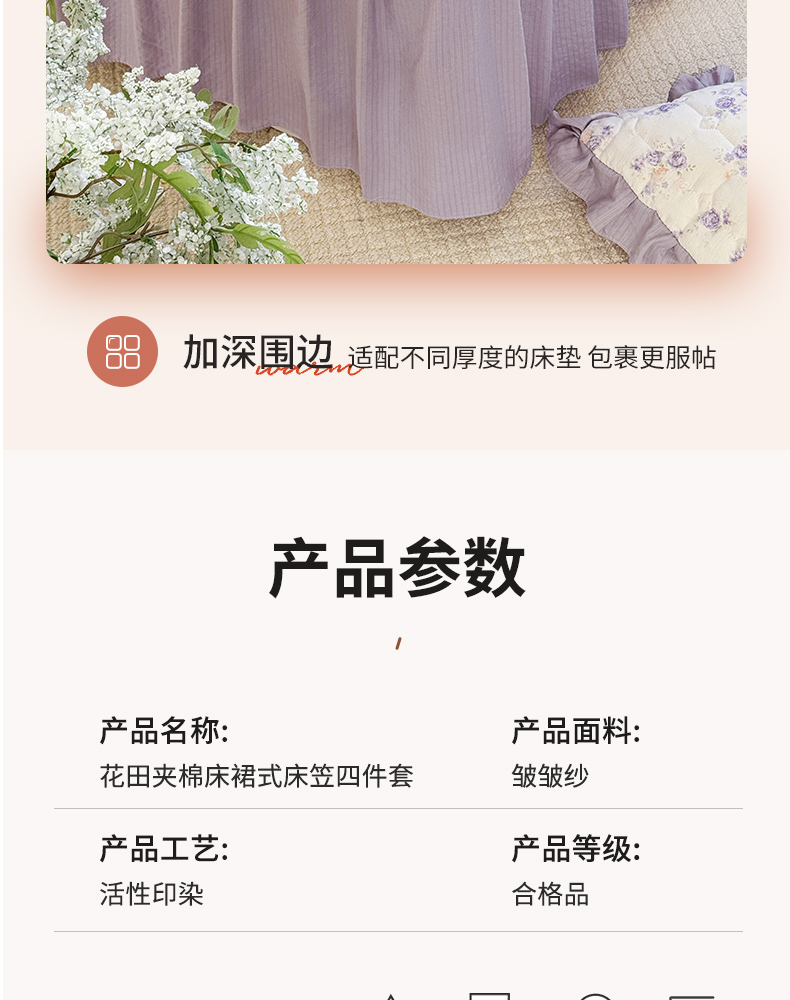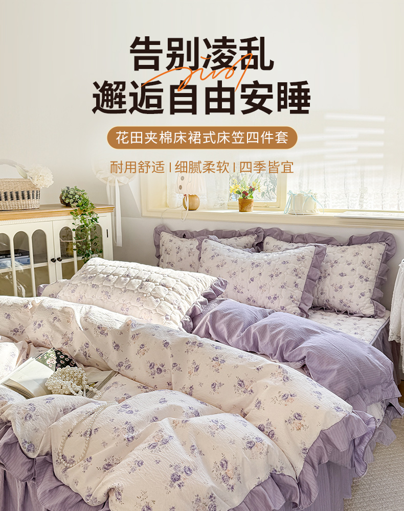 商品名称:禧缘家纺(原梦想家) 2026新款小清新皱皱纱木棉床裙式床笠印花单被套 花田