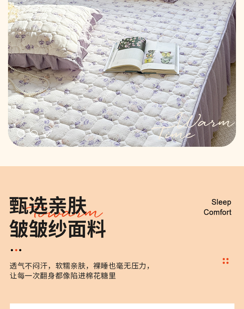 (总)禧缘家纺(原梦想家) 2026新款小清新皱皱纱木棉床裙式床笠印花三件套,彩虹,蝶梦,花田,沐春,南瓜,泡芙,甜筒,童话,兔兔,雾迟,星星,月光