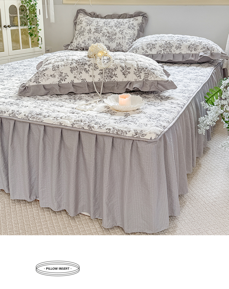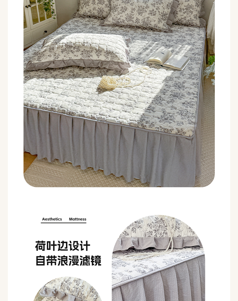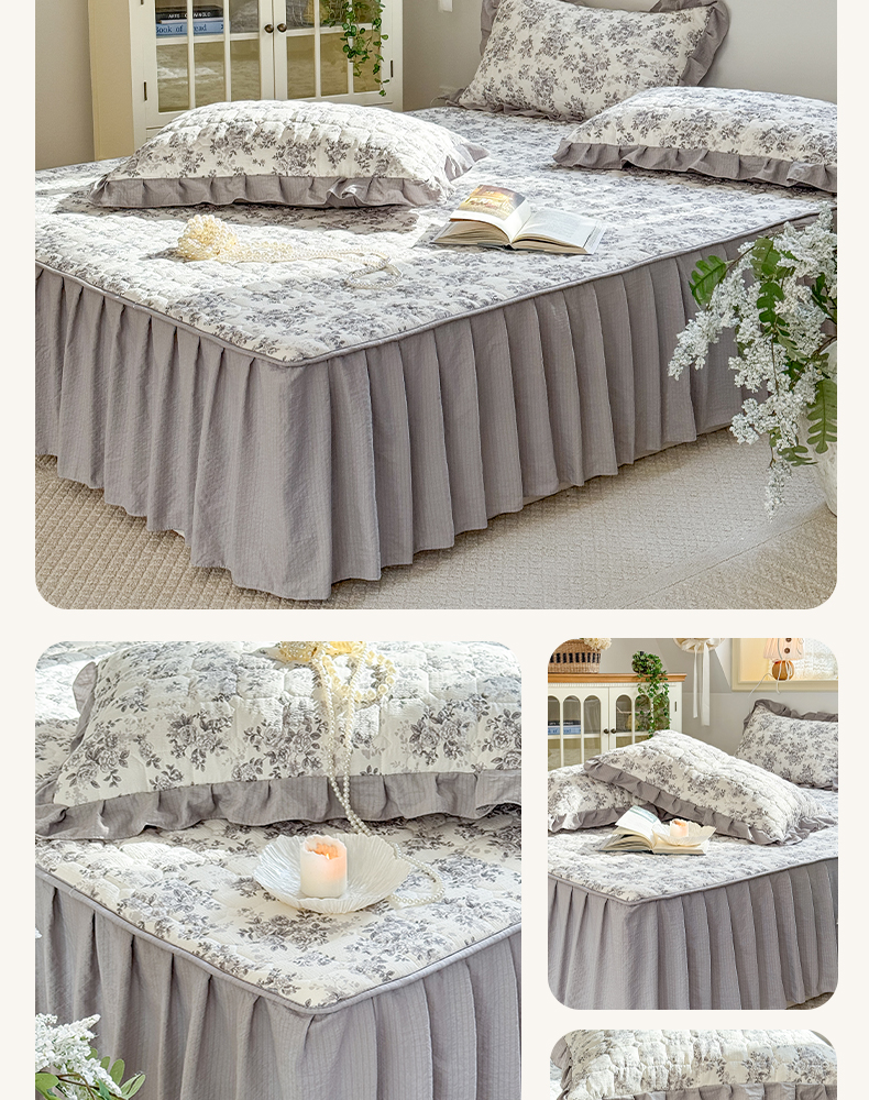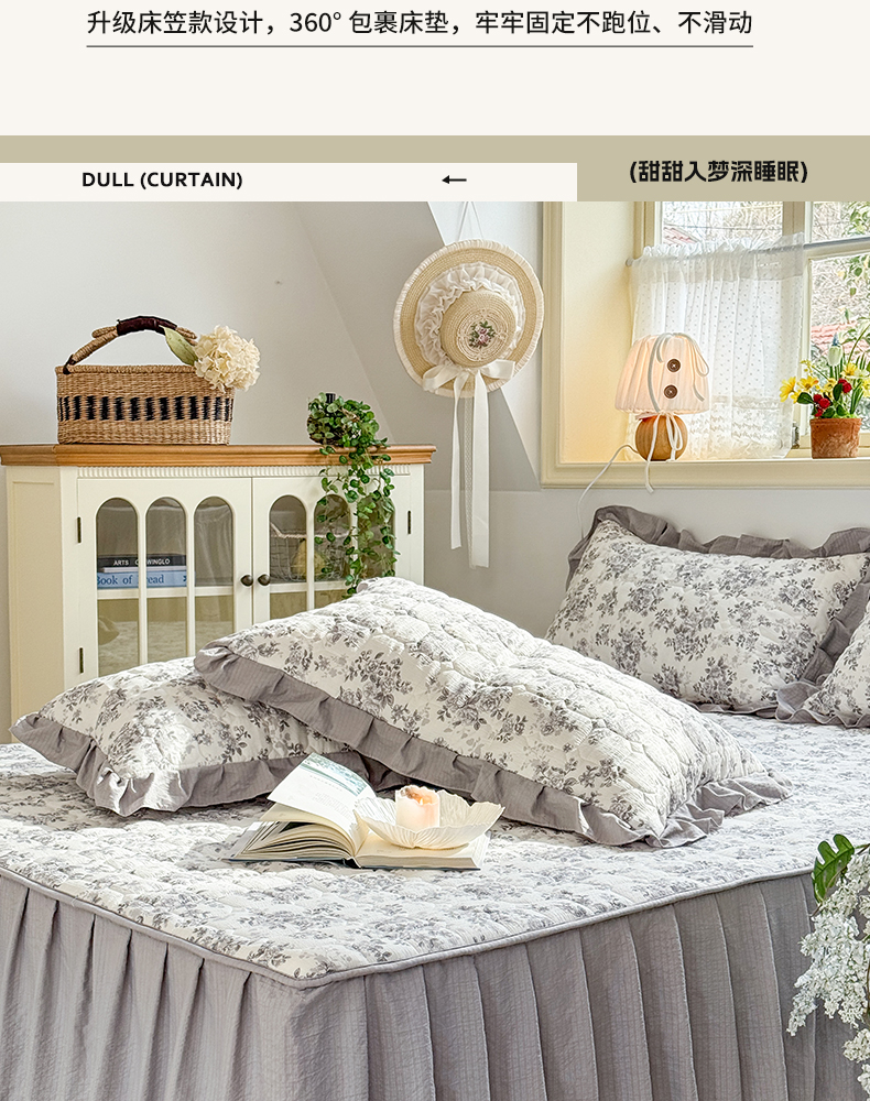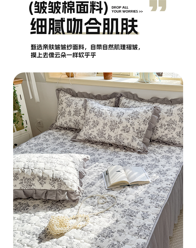 • 91家纺网 家纺一手货源 找家纺 禧缘家纺(原梦想家) 2026新款小清新皱皱纱木棉床裙式床笠印花三件套 雾迟