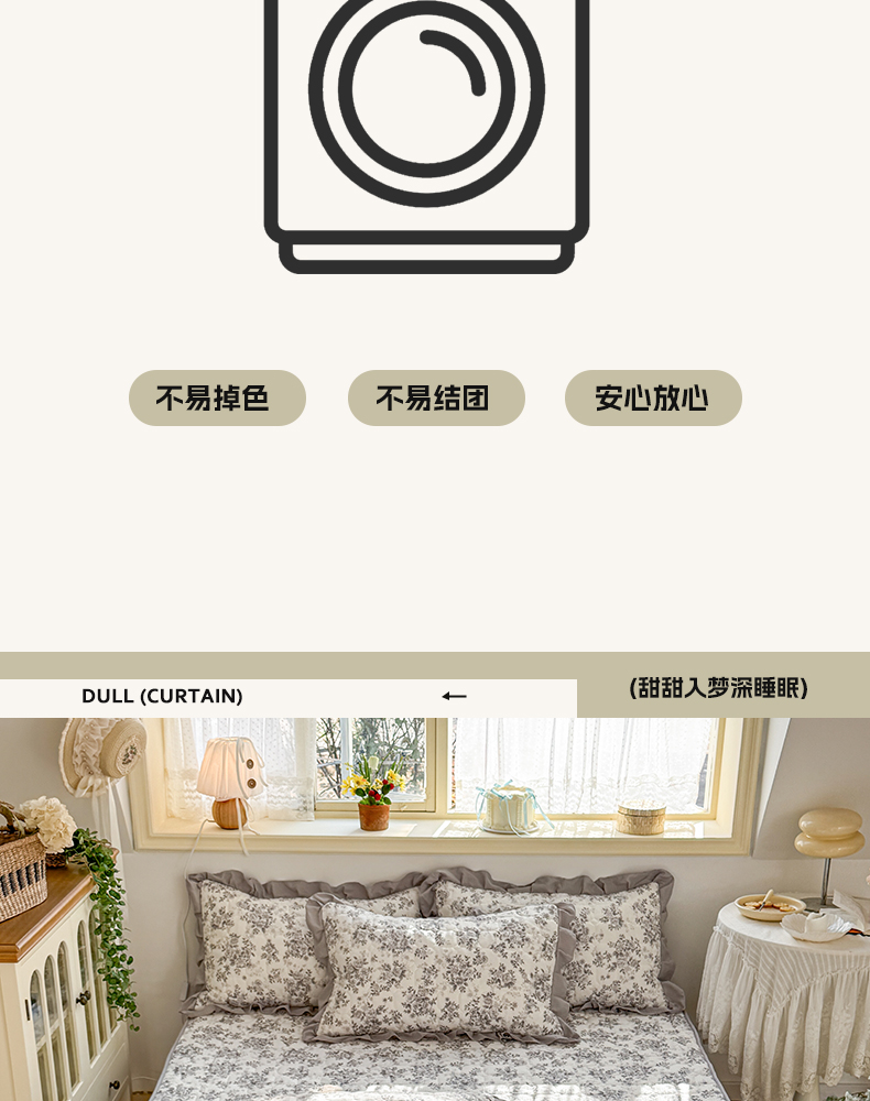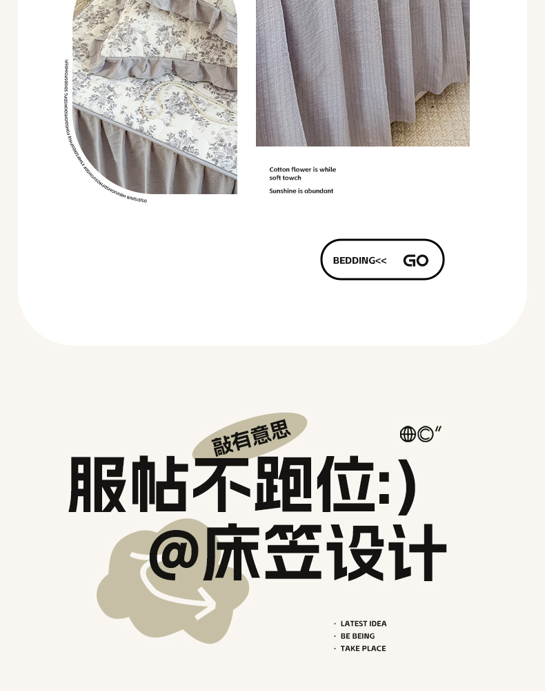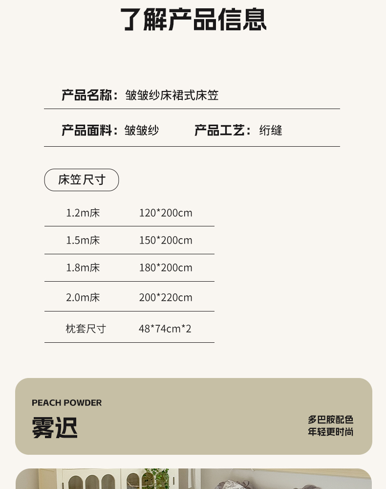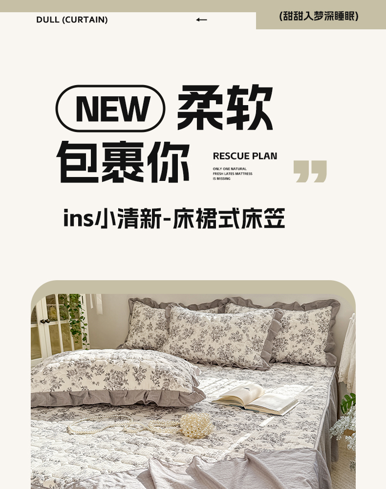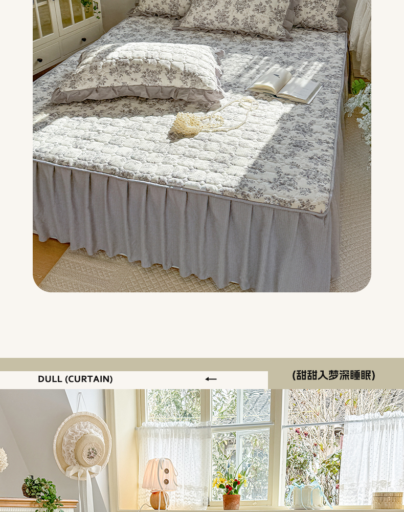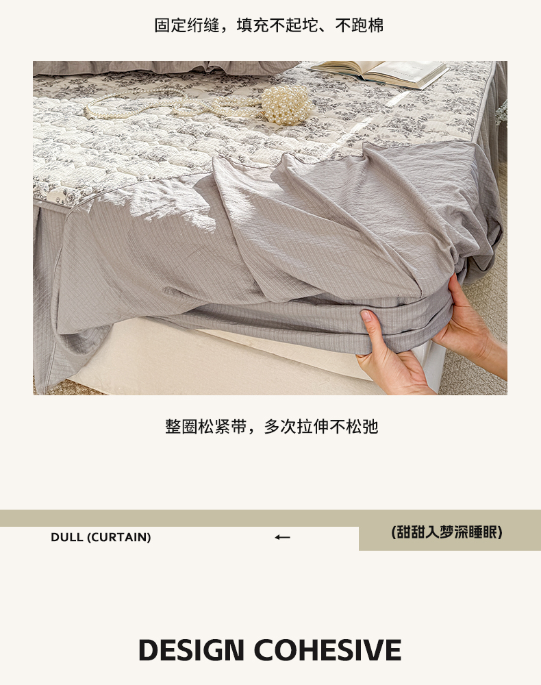 • 91家纺网 家纺一手货源 找家纺 禧缘家纺(原梦想家) 2026新款小清新皱皱纱木棉床裙式床笠印花三件套 雾迟