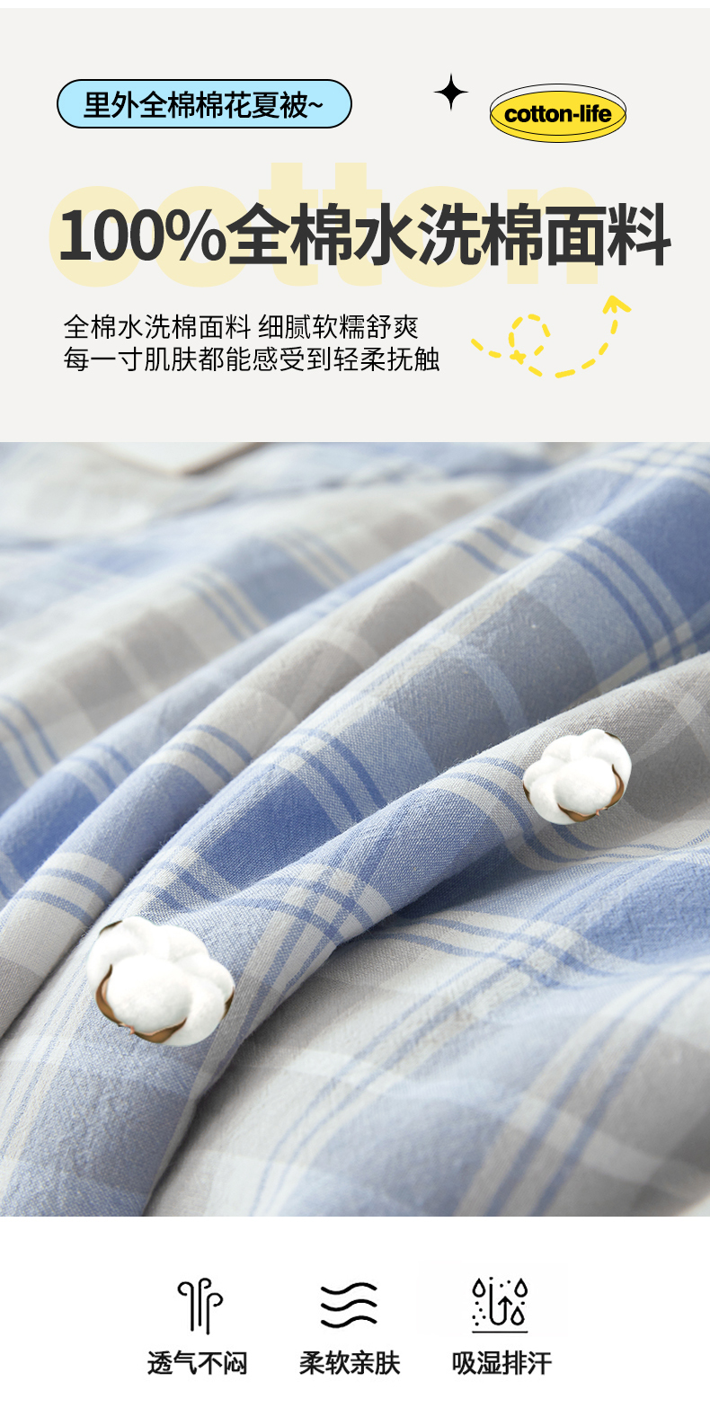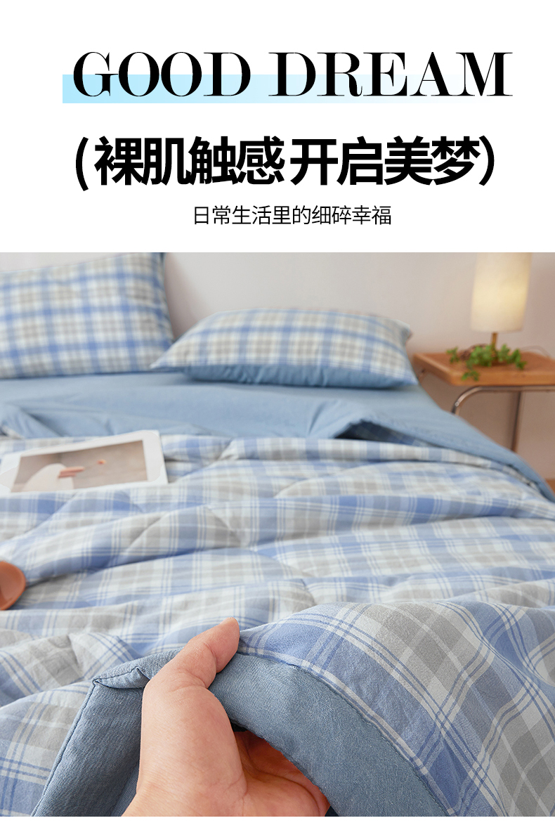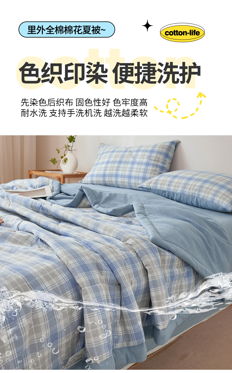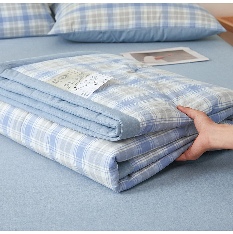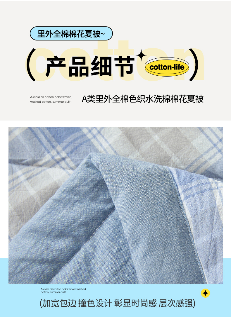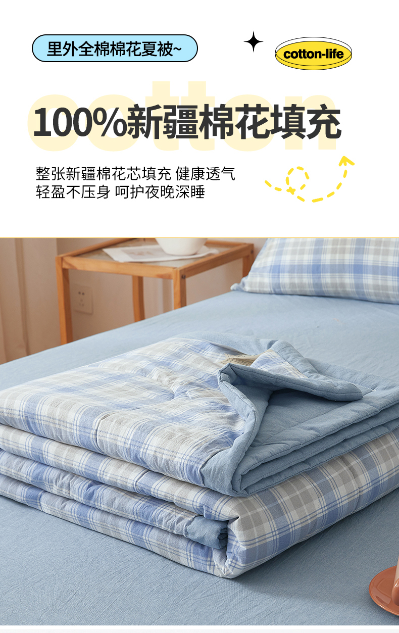 商品名称:2026新款A类里外全棉夏凉被100%新疆棉纯棉全棉填充无印格子款空调被全棉夏被 里外全棉-韵蓝格