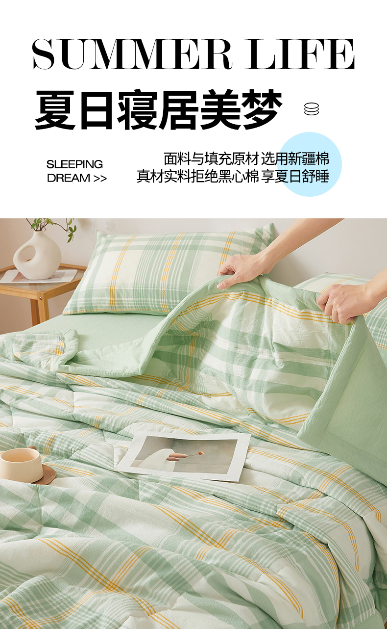 被子 > 夏被 > 2026新款A类里外全棉夏凉被100%新疆棉纯棉全棉填充无印格子款空调被全棉夏被 里外全棉-沐绿格