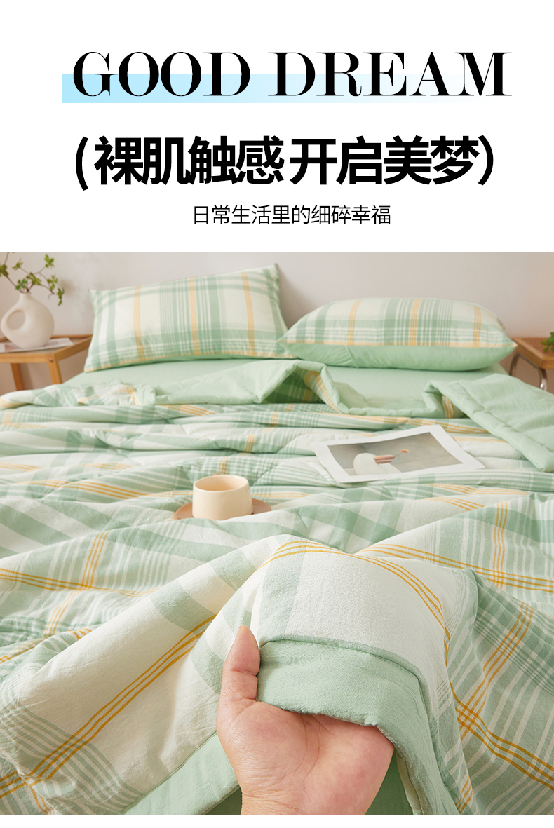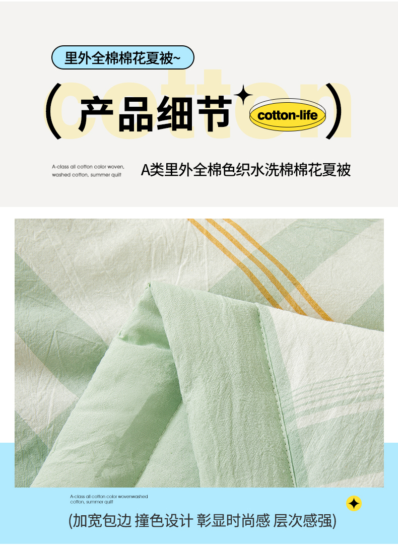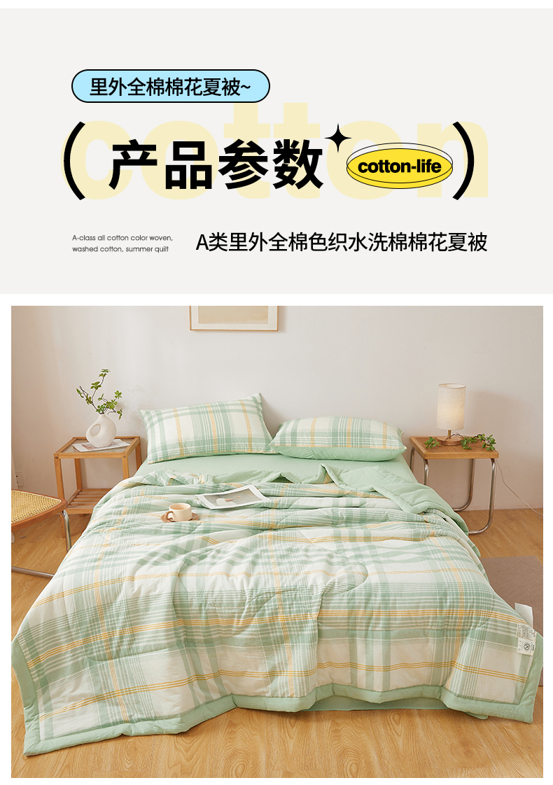 商品名称:2026新款A类里外全棉夏凉被100%新疆棉纯棉全棉填充无印格子款空调被全棉夏被 里外全棉-沐绿格