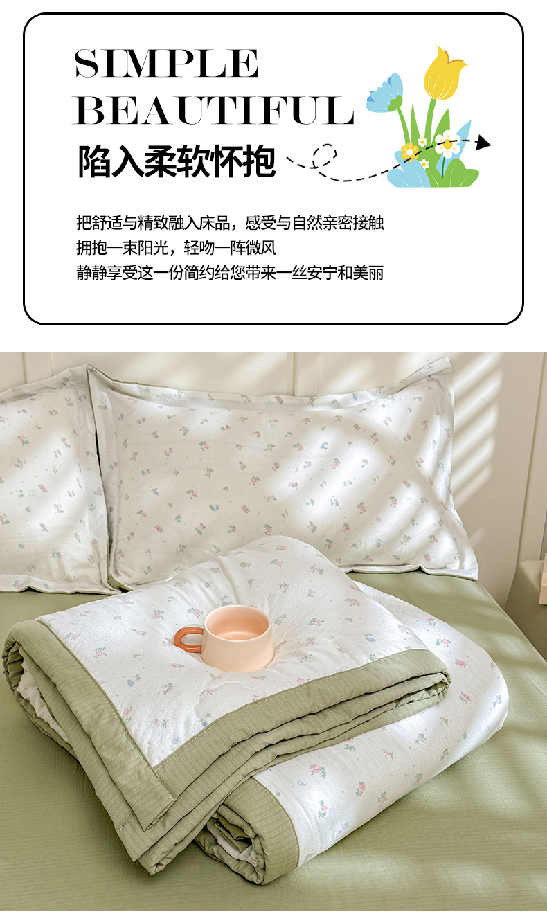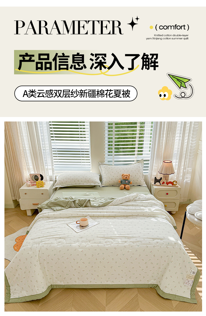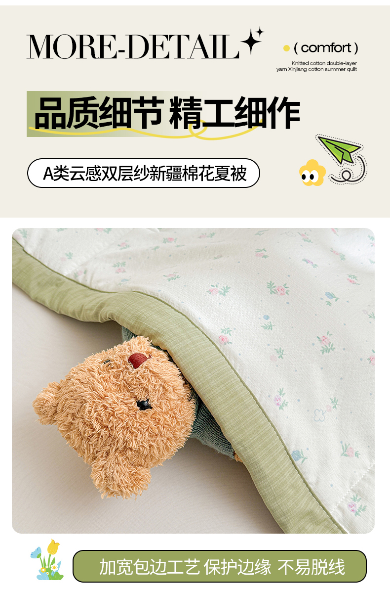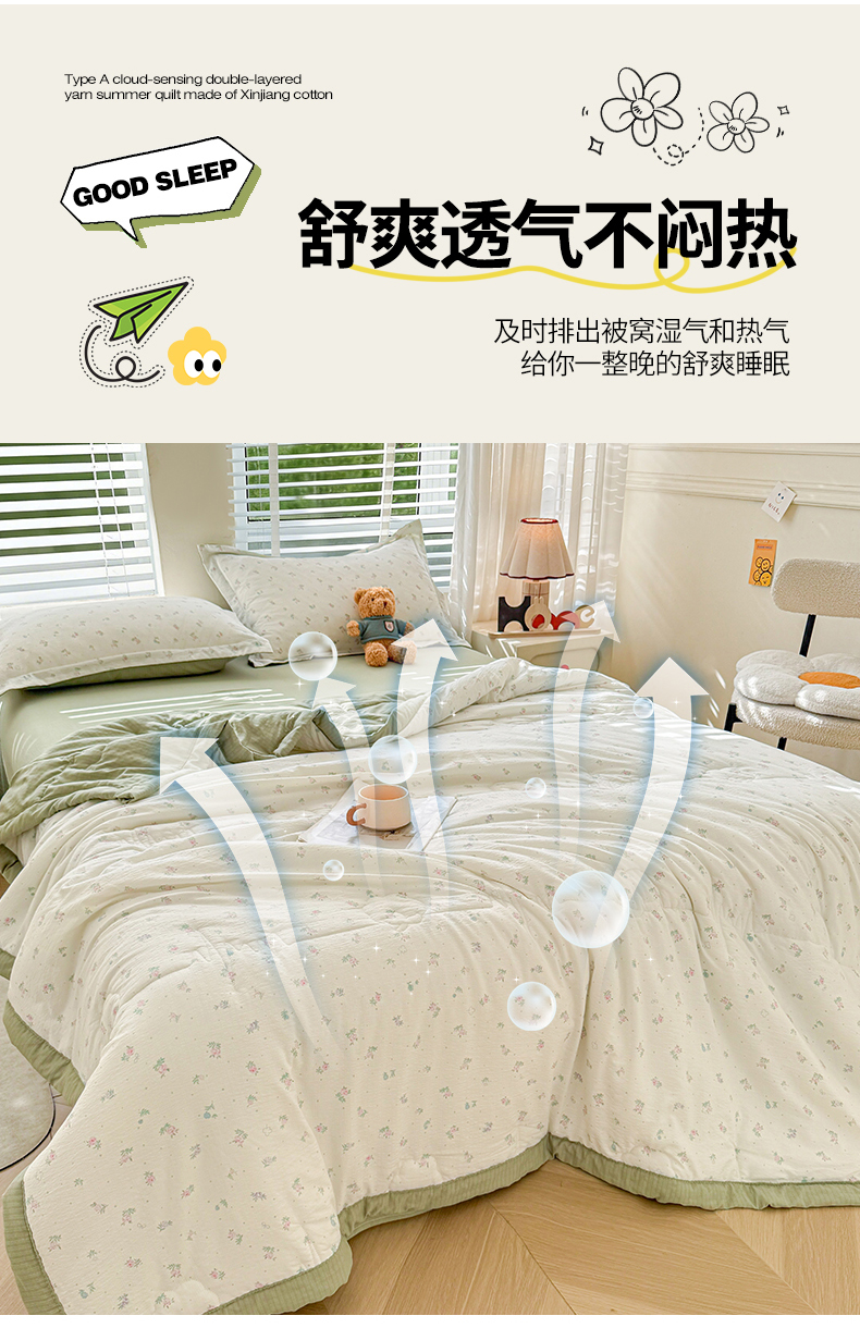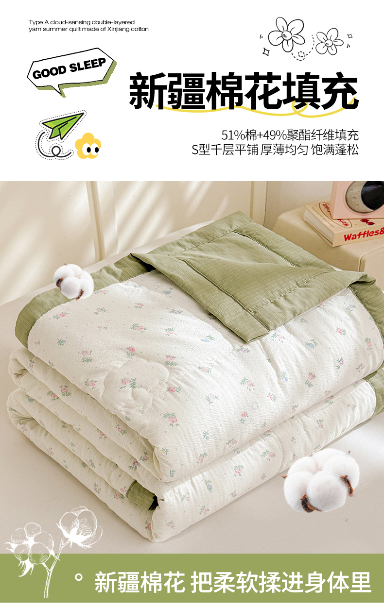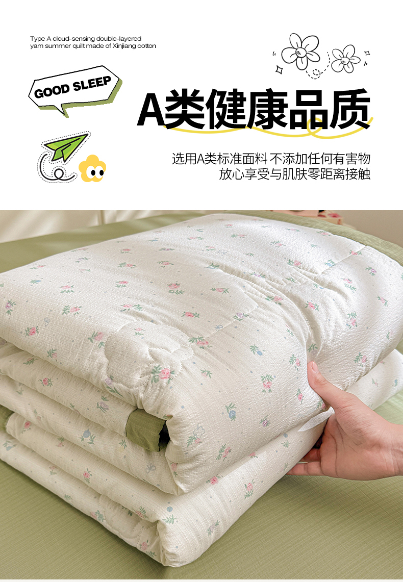商品名称:2026新款A类新疆棉花夏凉被加宽包边水洗棉卡通印花吸湿透气棉花夏被空调被 云感小繁花