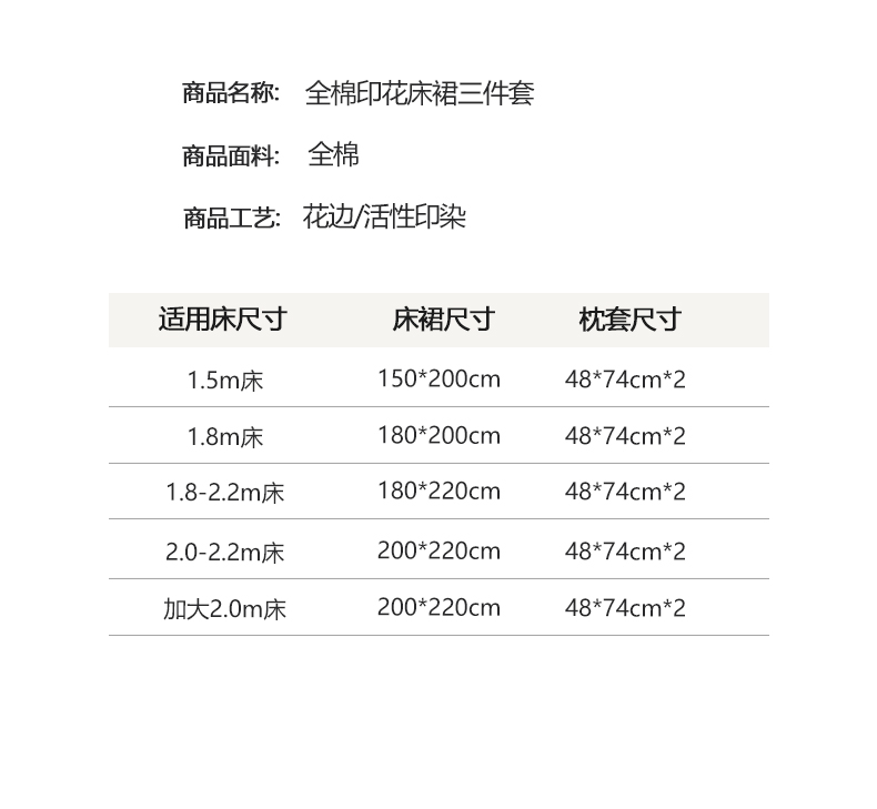 180*220cm床裙三件套