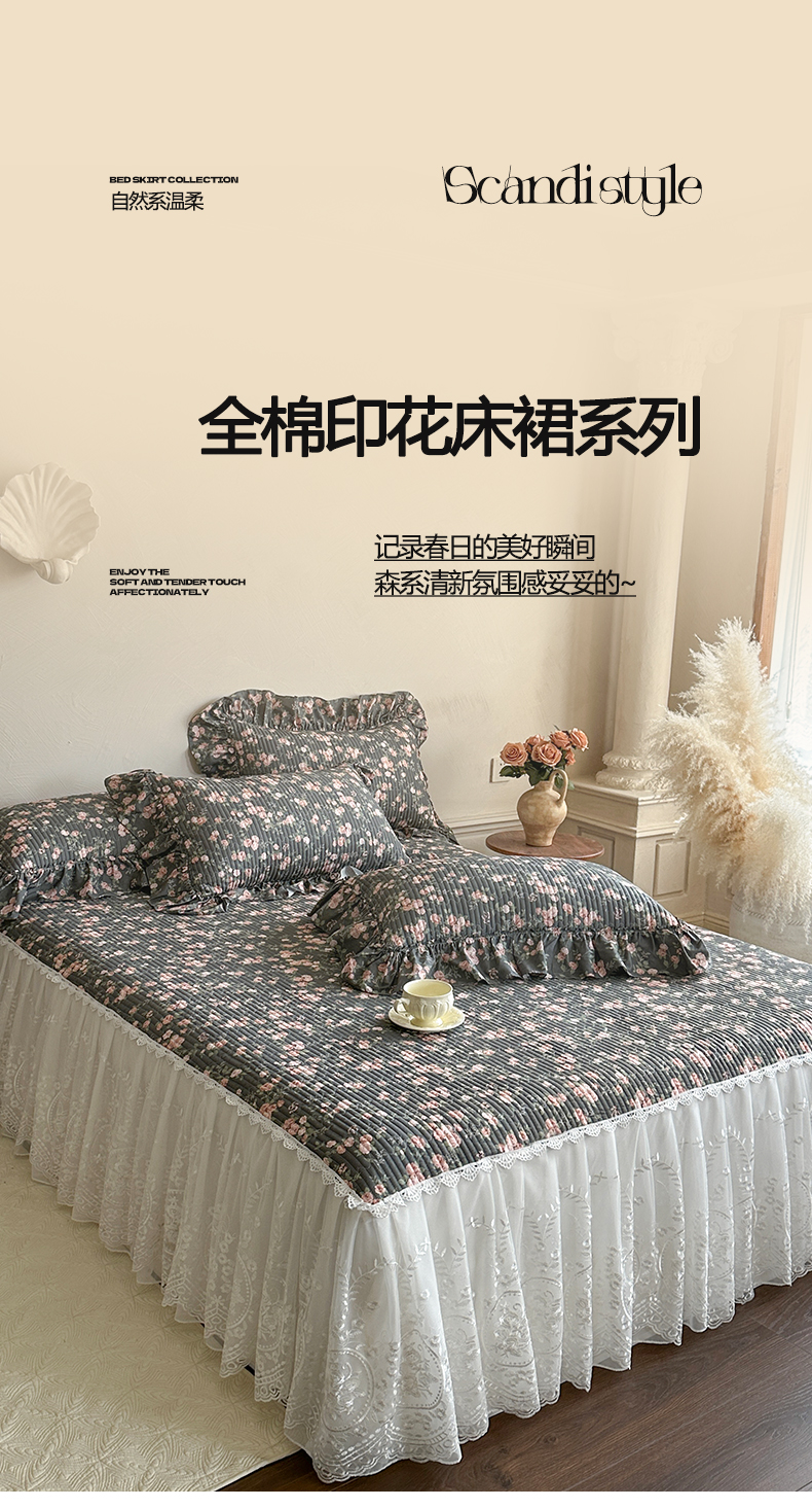 (总)瑞宝 2026新款法式全棉印花床裙三件套