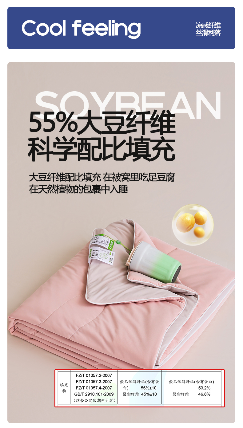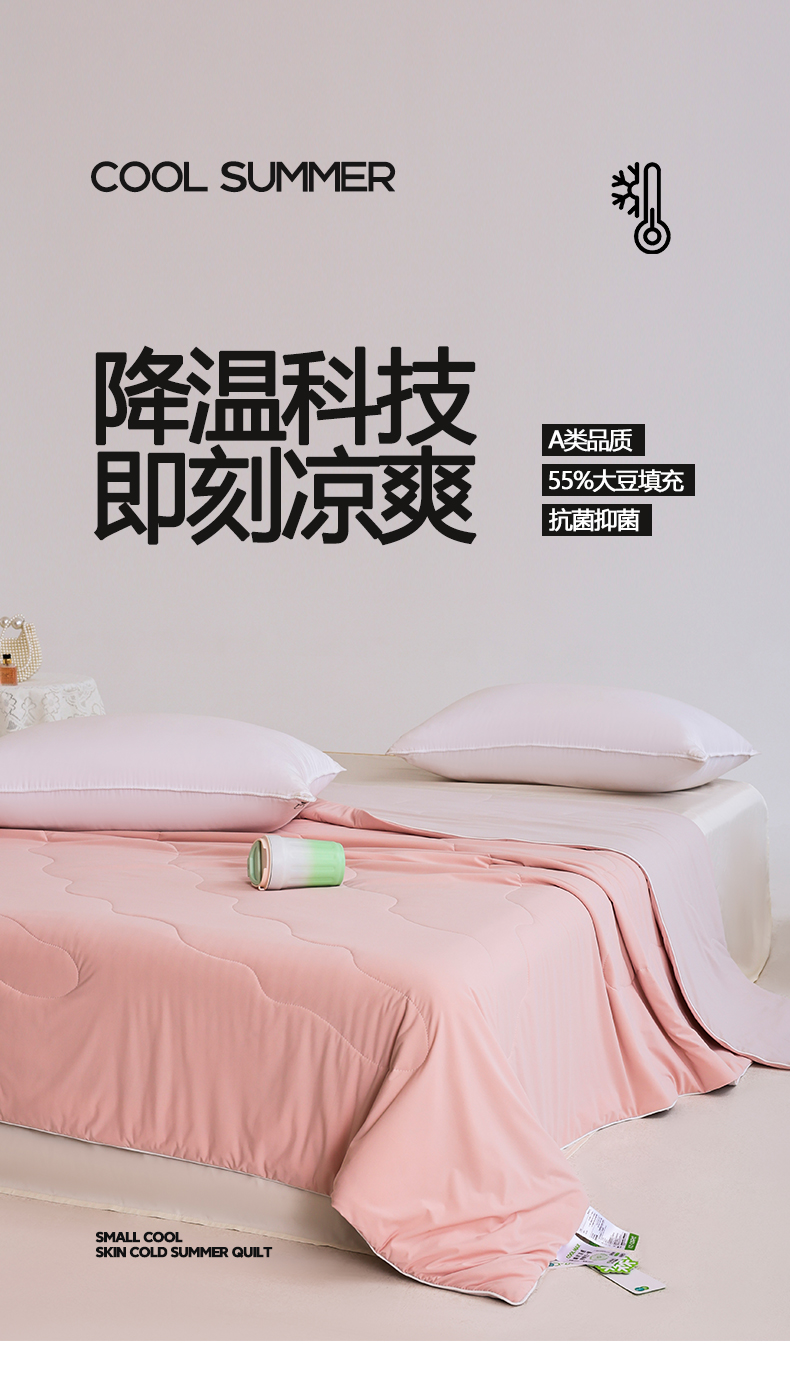 被子 > 夏被 > 憨豆家纺 2026春夏新款凉感丝A类锦氨(170克)55大豆抗菌夏被夏凉被空调被(配礼盒) 玫瑰粉+奶咖
