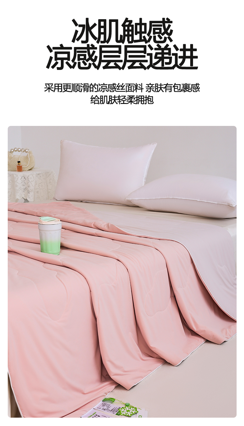 商品名称:憨豆家纺 2026春夏新款凉感丝A类锦氨(170克)55大豆抗菌夏被夏凉被空调被(配礼盒) 玫瑰粉+奶咖