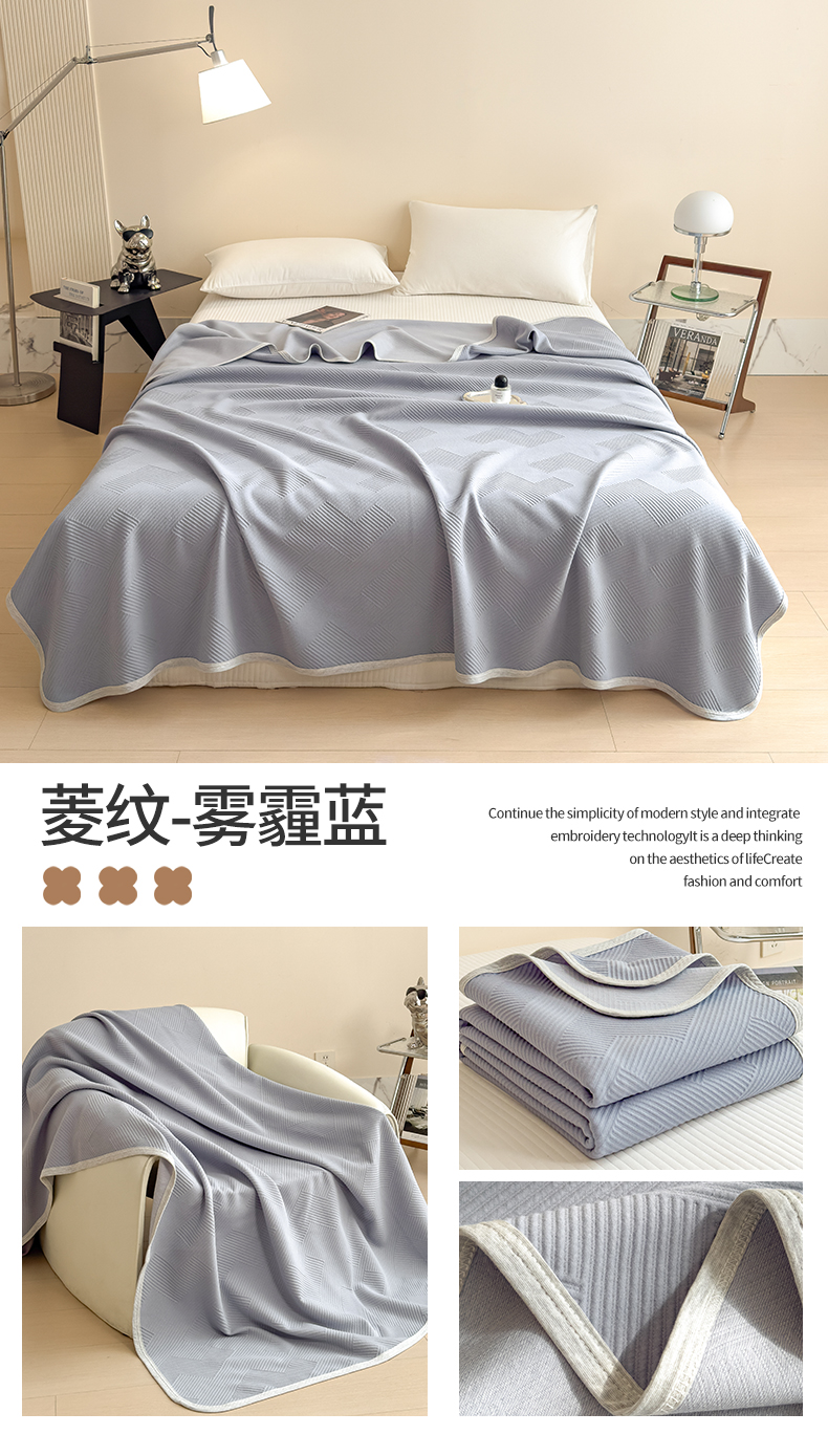 商品名称:布凡家居 2026新款290克全棉A类三层纱盖毯夏被午睡被 菱纹-雾霾蓝