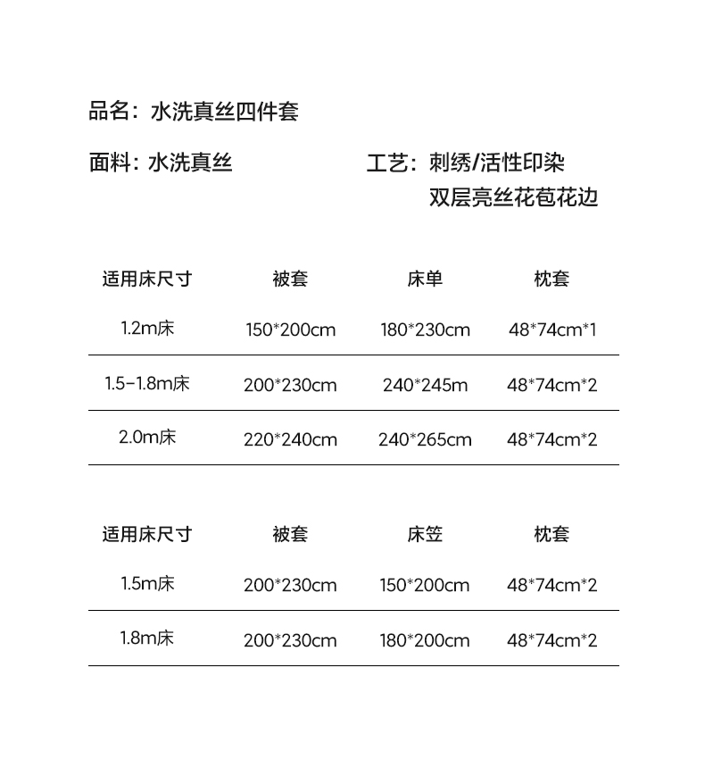 【床笠款】1.8四件套-被套220x240 | ¥125.00 |