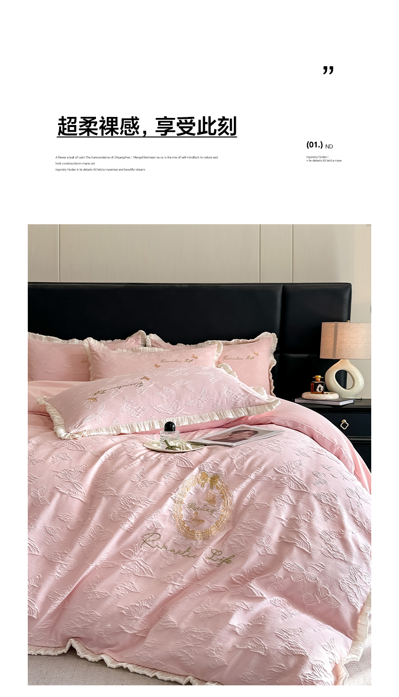 当前位置: 91家纺网 > 商品网购 > 床品套件 > 四件套 > 水洗真丝四件套 > 宇航家纺 2026新款浮雕花边水洗真丝四件套-梦境 梦境-银灰