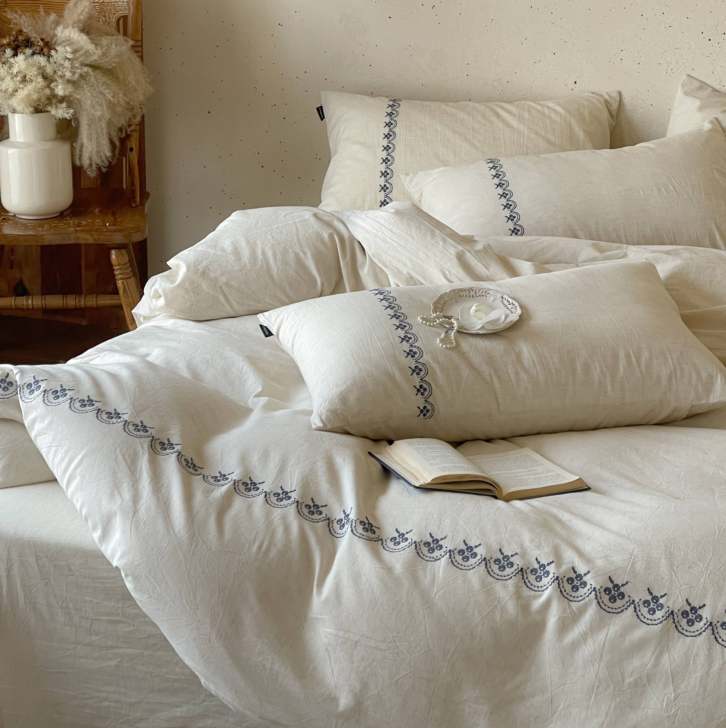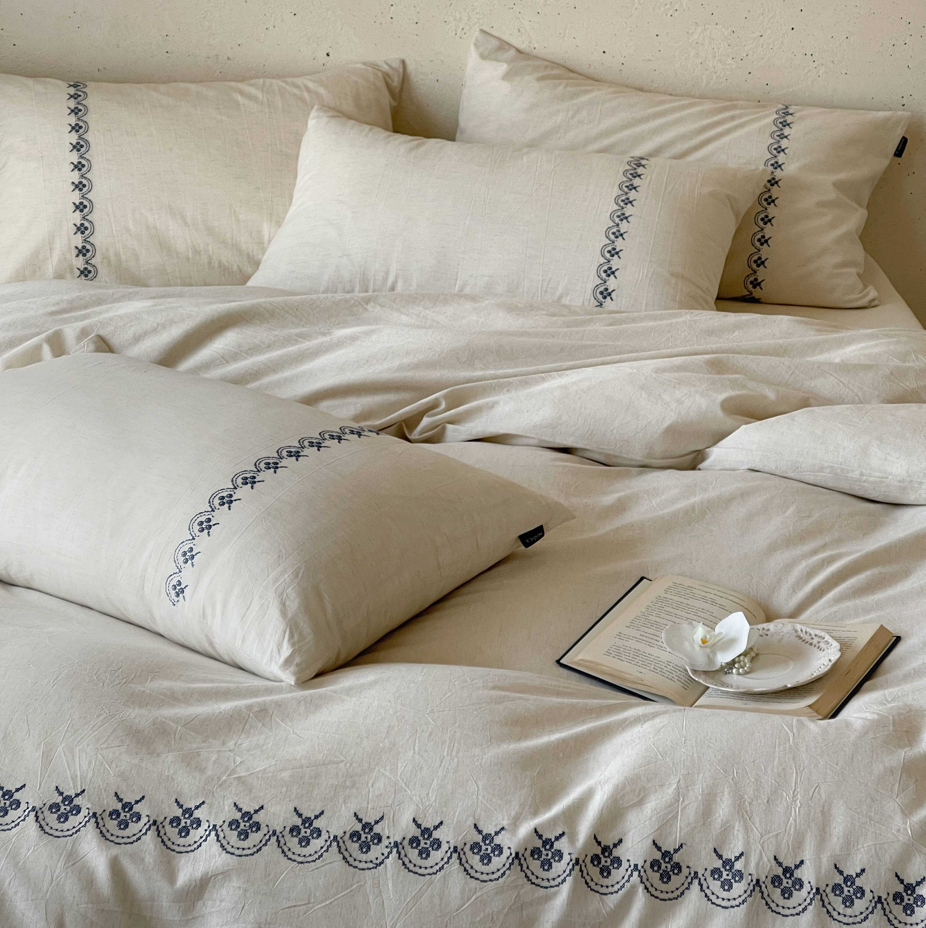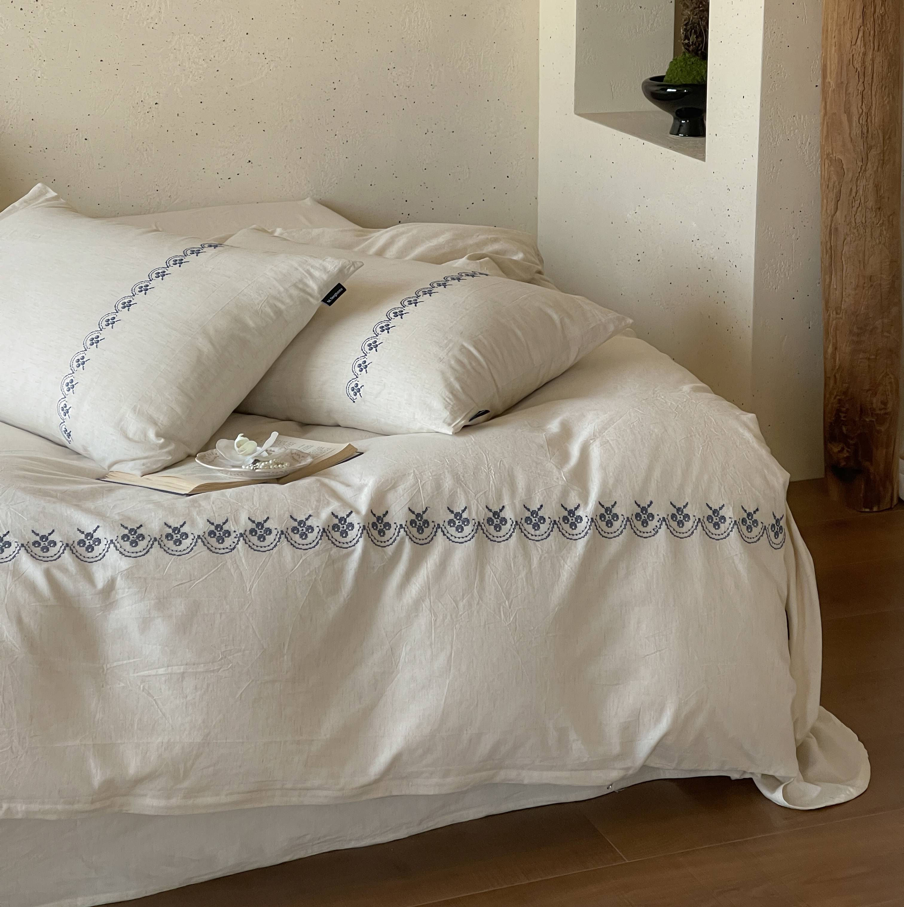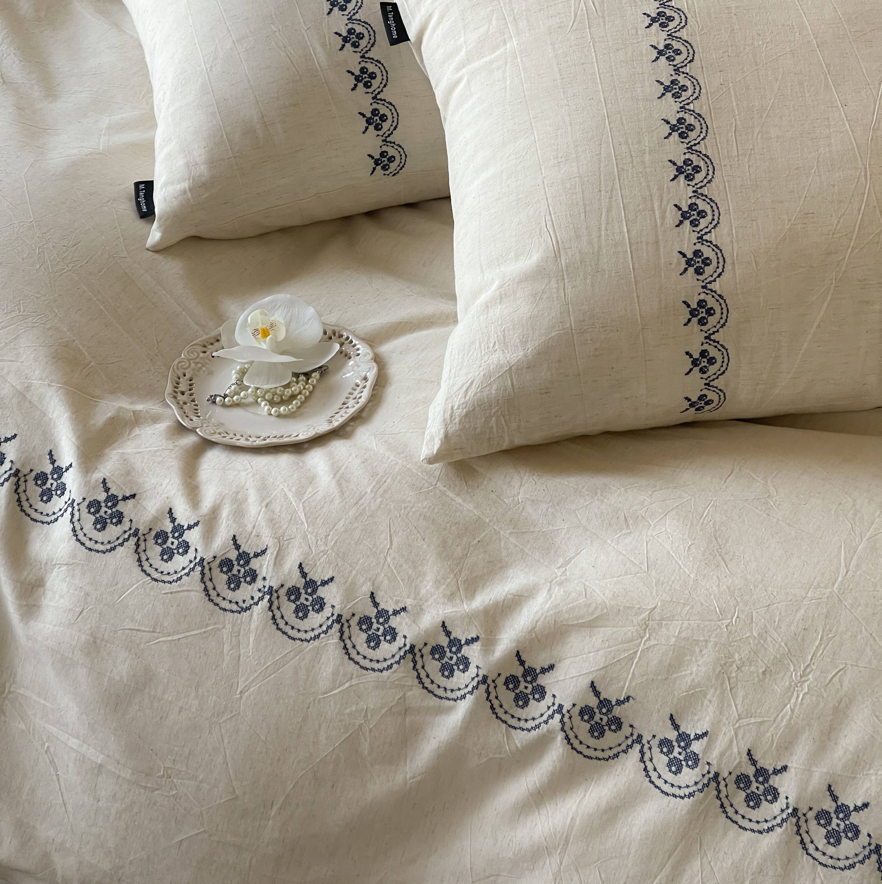 当前位置: 91家纺网 > 商品网购 > 床品套件 > 四件套 > 棉麻四件套 > (总)觅糖家纺 2026春夏新款非遗手法十字绣天然棉麻系列四件套