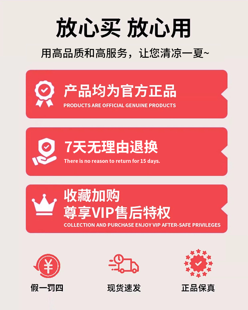 | 非质量问题、不影响二次销售,在30天内支持退换货。 | |