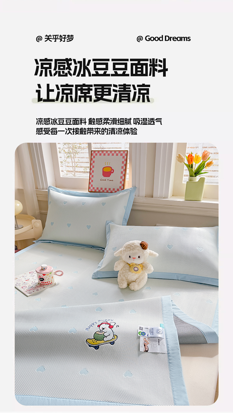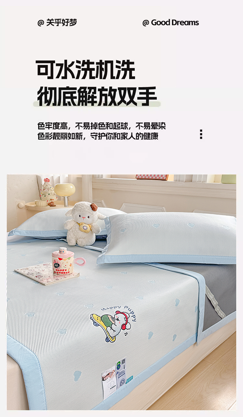 当前位置: 91家纺网 > 商品网购 > 床上用品 > 凉席 > 其他凉席 > 梦卡迪 2026新款A类爱心卡通凉感豆豆绣花床席 滑板小狗-蓝