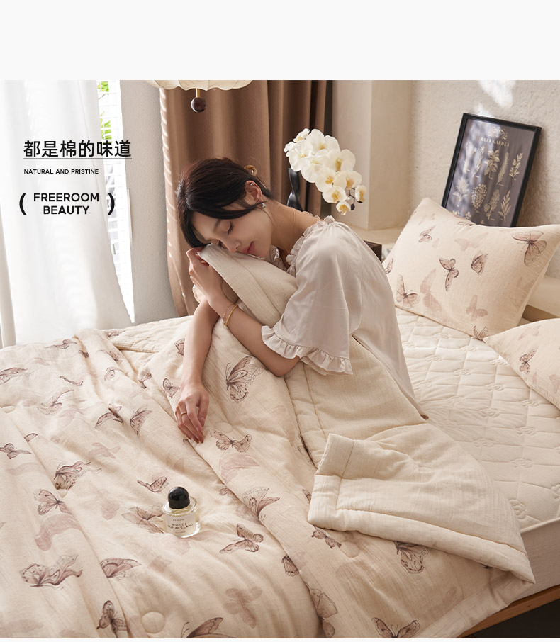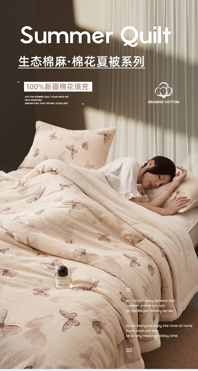 • 91家纺网 家纺一手货源 找家纺 吾诺家居 2026新款棉麻系列-棉麻印花棉花夏被 水墨蝴蝶